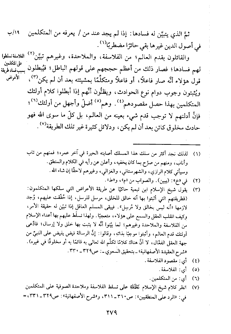 7 انظر: كلام شيخ الإسلام رحمه الله على تسلط الفلاسفة وملاحدة الصوفية على المتكلمين في: الرد على المنطقيين ص 310-311. وشرح الأصفهانية ص 329-331. ومجموع الفتاوى 13/157. وشرح حديث النزول ص 420-422، 428. ومنهاج السنة النبوية 1/352.
