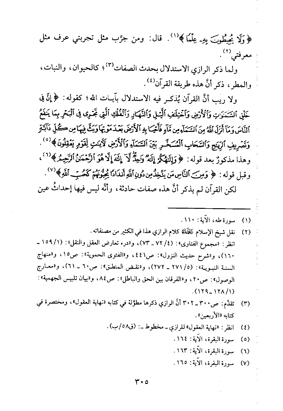 ولما ذكر الرازي الاستدلال بحدث الصفات3؛ كالحيوان، والنبات، والمطر، ذكر أنّ هذه طريقة القرآن4.