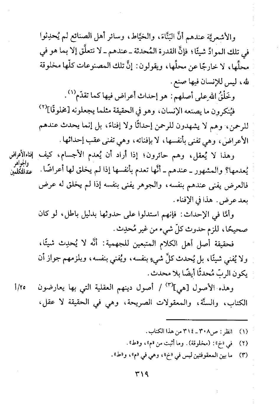 وهذه الأصول [هي] 3 أصول دينهم العقلية التي بها يعارضون الكتاب، والسنّة، والمعقولات الصريحة، وهي في الحقيقة لا عقل،