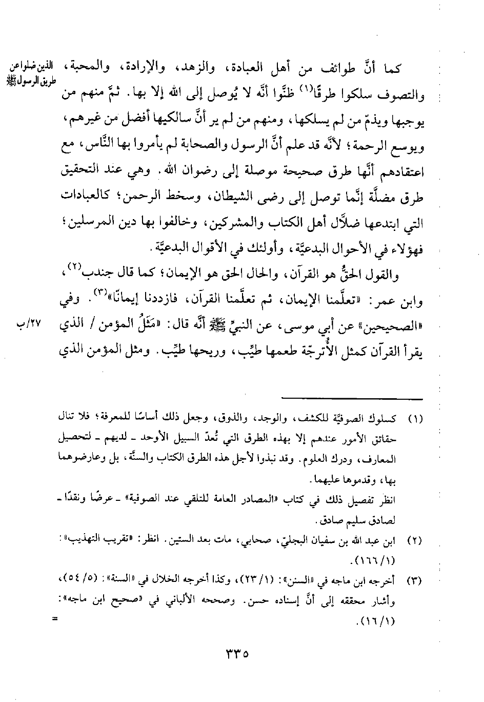 3 أخرجه ابن ماجه في السنن 123، وكذا أخرجه الخلال في السنة 554، وأشار محققه إلى أنّ إسناده حسن. وصححه الألباني في صحيح ابن ماجه 116.