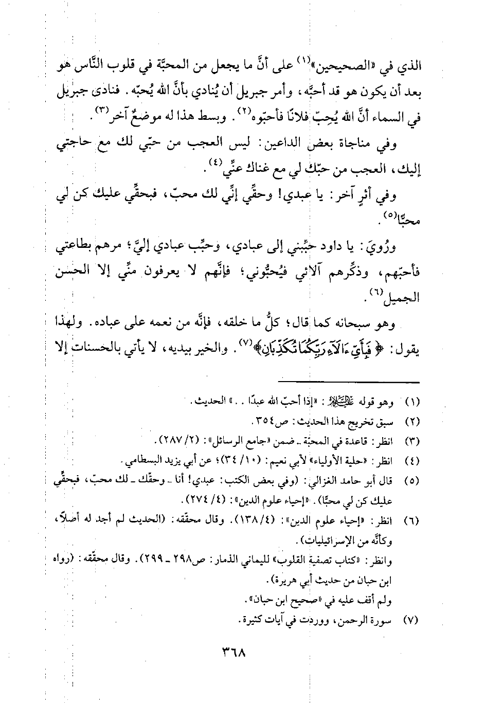 5 قال أبو حامد الغزالي: "وفي بعض الكتب: عبدي! أنا - وحقّك - لك محبّ، فبحقّي عليك كن لي محبّاً". إحياء علوم الدين 4274.