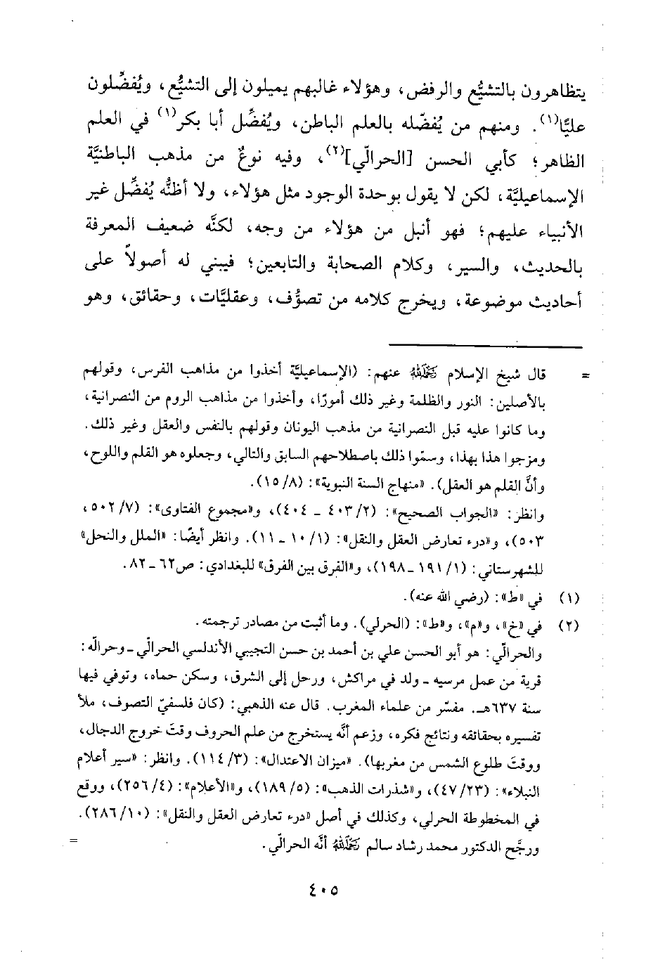 وانظر: سير أعلام النبلاء 2347. وشذرات الذهب 5189. والأعلام 4256. ووقع في المخطوطة الحرلي، وكذلك في أصل درء تعارض العقل والنقل 10286. ورجّح الدكتور محمد رشاد سالم رحمه الله أنّه الحرالّي.