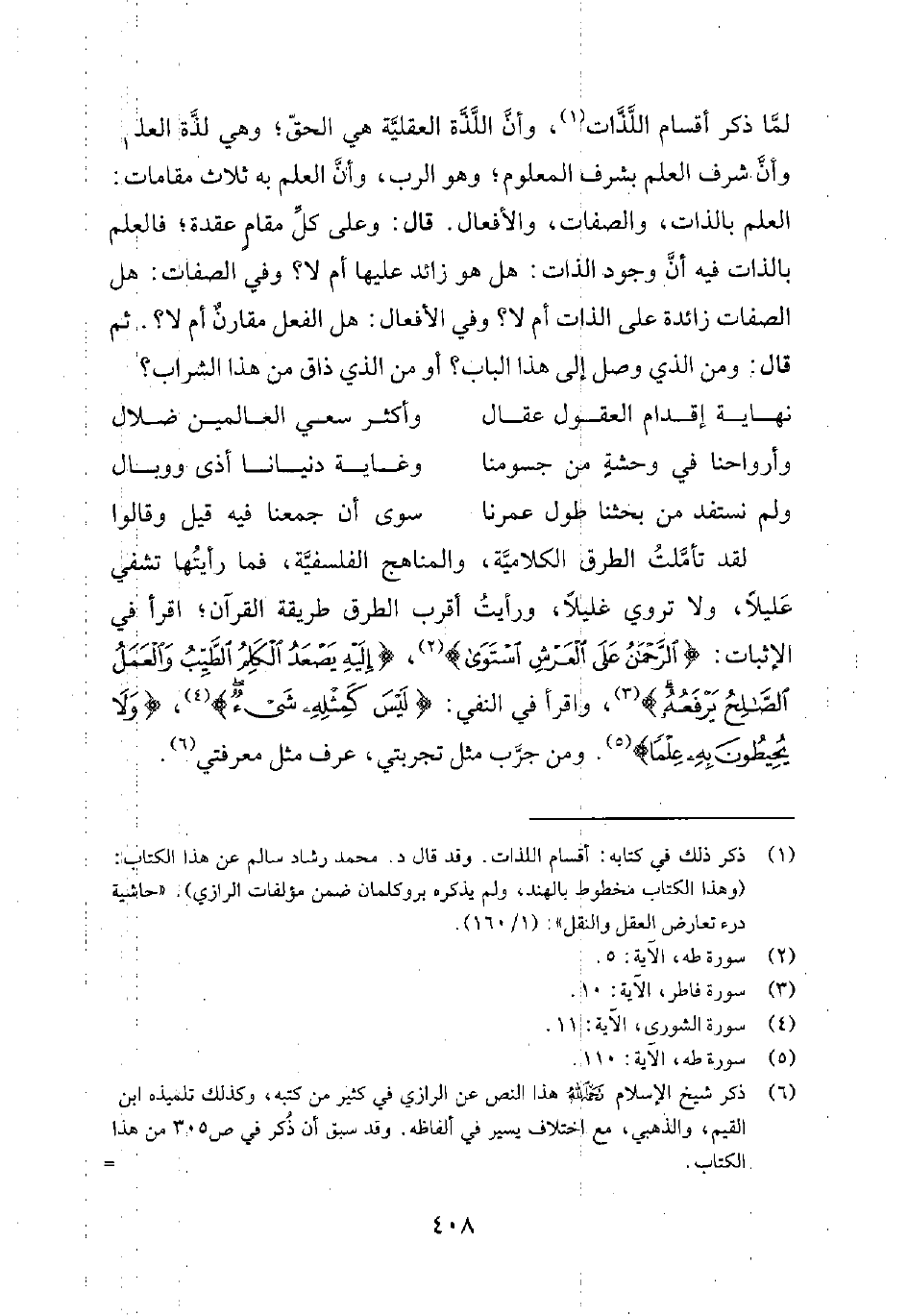 6 ذكر شيخ الإسلام رحمه الله هذا النص عن الرازي في كثير من كتبه، وكذلك تلميذه ابن القيم، والذهبي، مع اختلاف يسير في ألفاظه. وقد سبق أن ذُكر في ص 357-358 من هذا الكتاب.