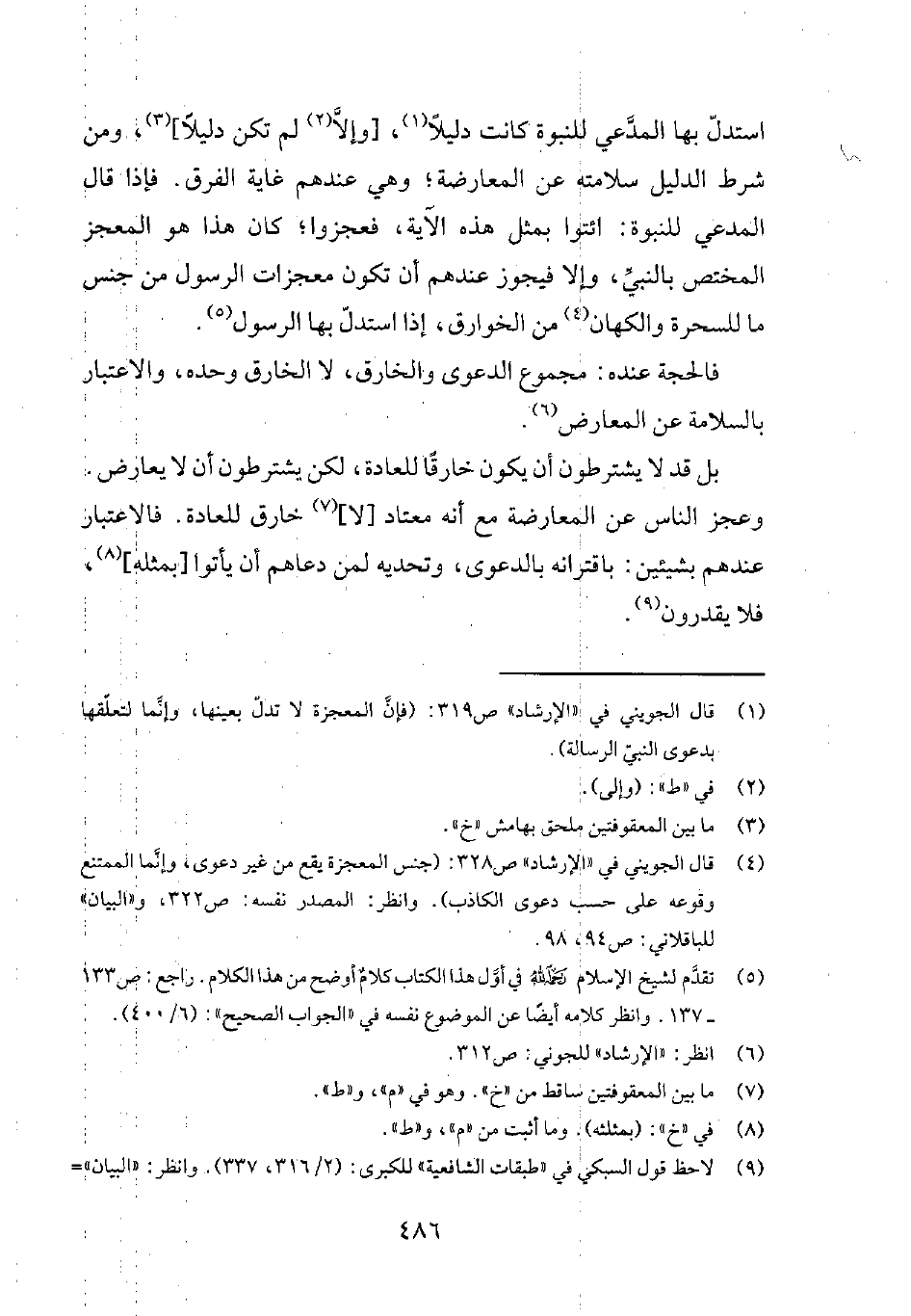 9 لاحظ قول السبكي في طبقات الشافعية الكبرى 2/316، 337. وانظر: البيان للباقلاني ص 16-17، 19، 94. والإرشاد للجويني ص 309، 312-313.