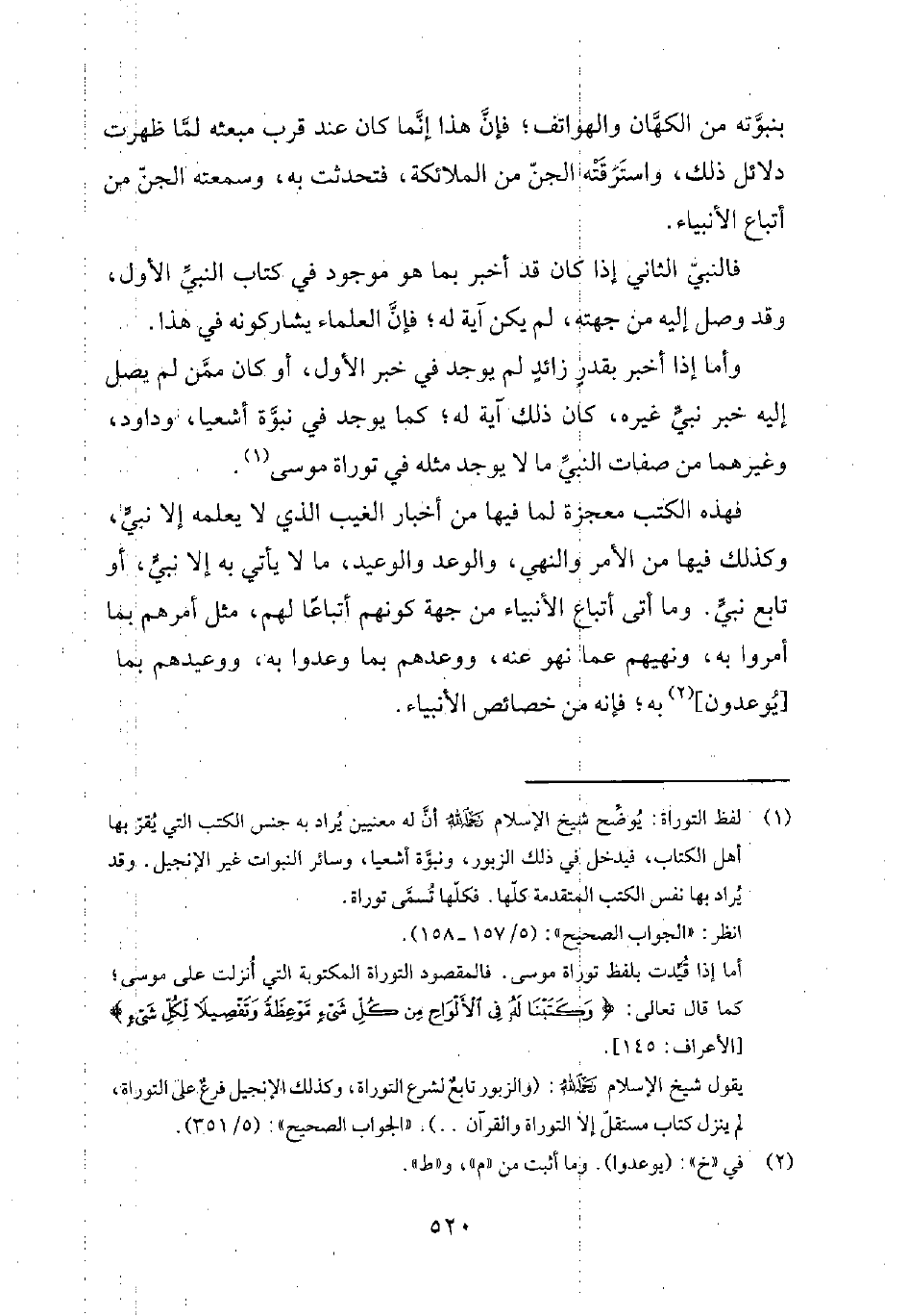 1 لفظ التوراة. يُوضّح شيخ الإسلام رحمه الله أنّ له معنيين يُراد به جنس الكتب التي يُقرّ بها أهل الكتاب، فيدخل في ذلك الزبور، ونبوّة أشعيا، وسائر النبوات غير الإنجيل. وقد يُراد بها نفس الكتب المتقدمة كلّها. فكلّها تُسمّى توراة. انظر الجواب الصحيح 5/157-158.