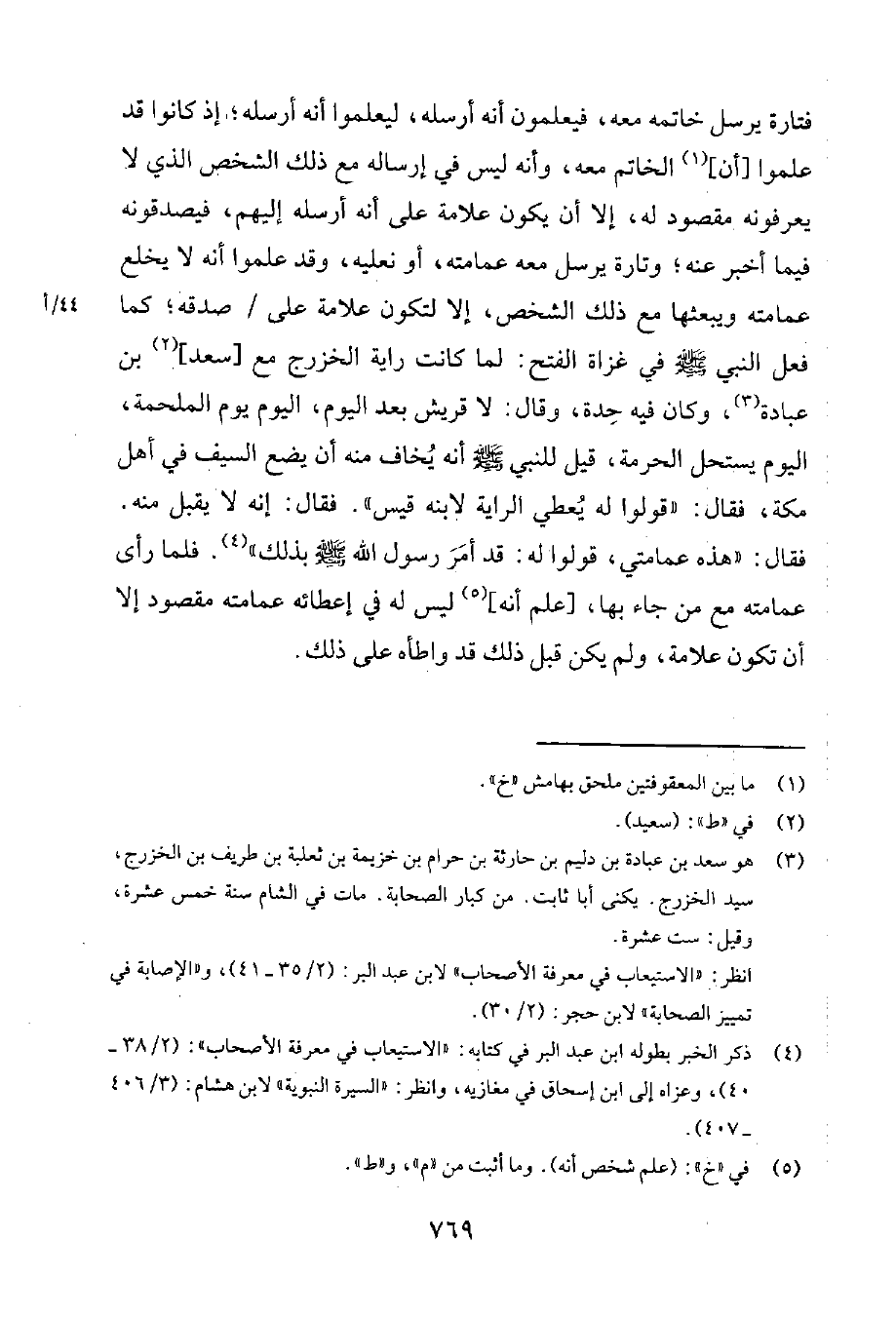 3 هو سعد بن عبادة بن دليم بن حارثة بن حرام بن خزيمة بن ثعلبة بن طريف بن الخزرج، سيّد الخزرج. يكنى أبا ثابت. من كبار الصحابة. مات في الشام سنة خمس عشرة، وقيل: ست عشرة.