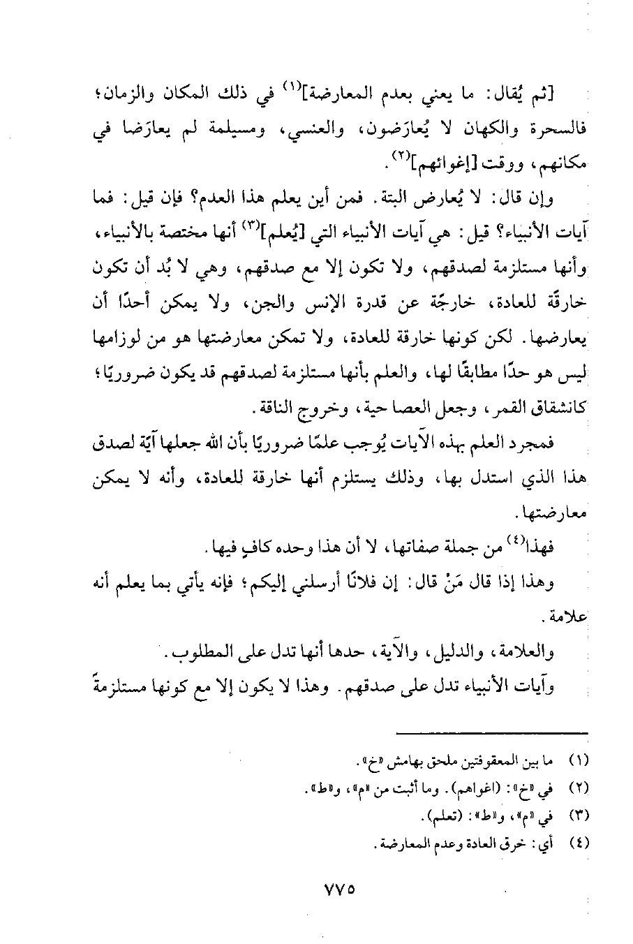 [ثمّ يُقال: ما يعني بعدم المعارضة] 1 في ذلك المكان والزمان؛ فالسحرة والكهان لا يُعارَضون، والعنسي، ومسيلمة لم يعارَضا في مكانهم، ووقت [إغوائهم] 2.