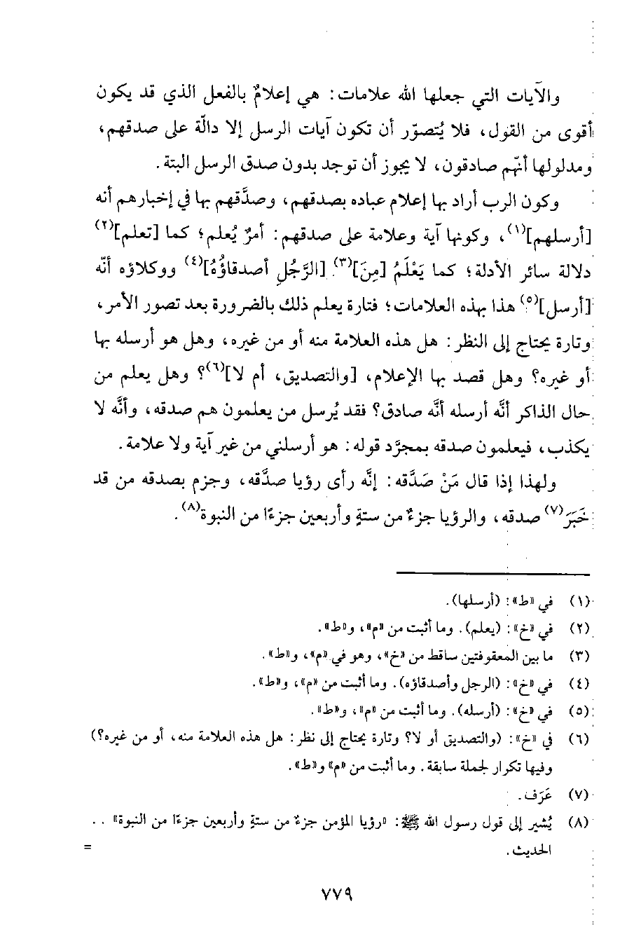 8 يُشير إلى قول رسول الله صلى الله عليه وسلم: "رؤيا المؤمن جزءٌ من ستةٍ وأربعين جزءاً من النبوة".. الحديث أخرجه البخاري في صحيحه 62562، كتاب التعبير، باب رؤيا الصالحين. ومسلم في صحيحه 41773، كتاب الرؤيا. وأحمد في المسند 218، 50، 229. وانظر كلام الحافظ ابن حجر في فتح الباري (12390) على هذا الحديث.