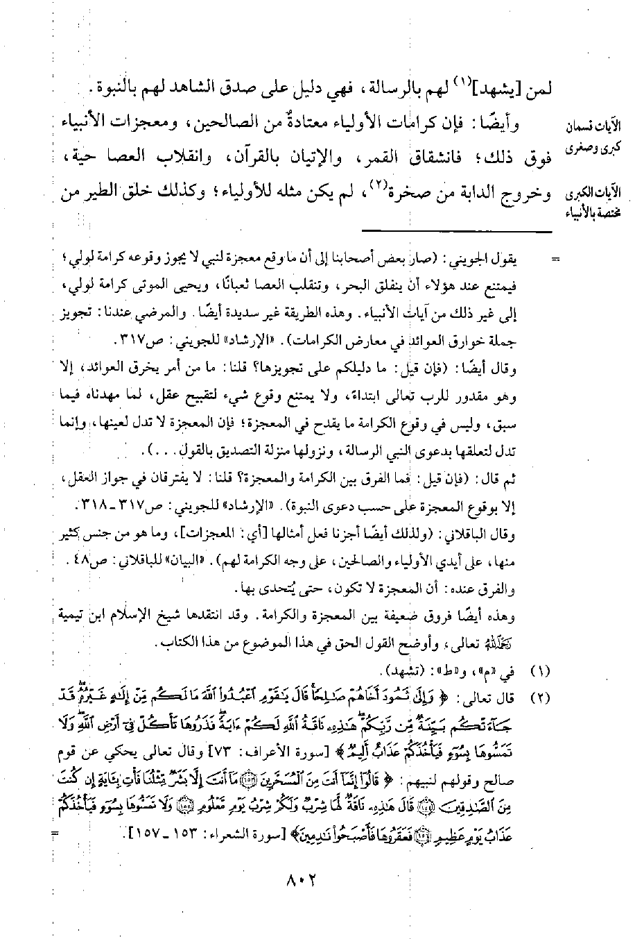 وأيضاً: فإنّ كرامات الأولياء معتادةٌ من الصالحين، ومعجزات الأنبياء فوق ذلك؛ فانشقاق القمر، والإتيان بالقرآن، وانقلاب العصا حيّة، وخروج الدابة من صخرة2، لم يكن مثله للأولياء؛ وكذلك خلق الطير من