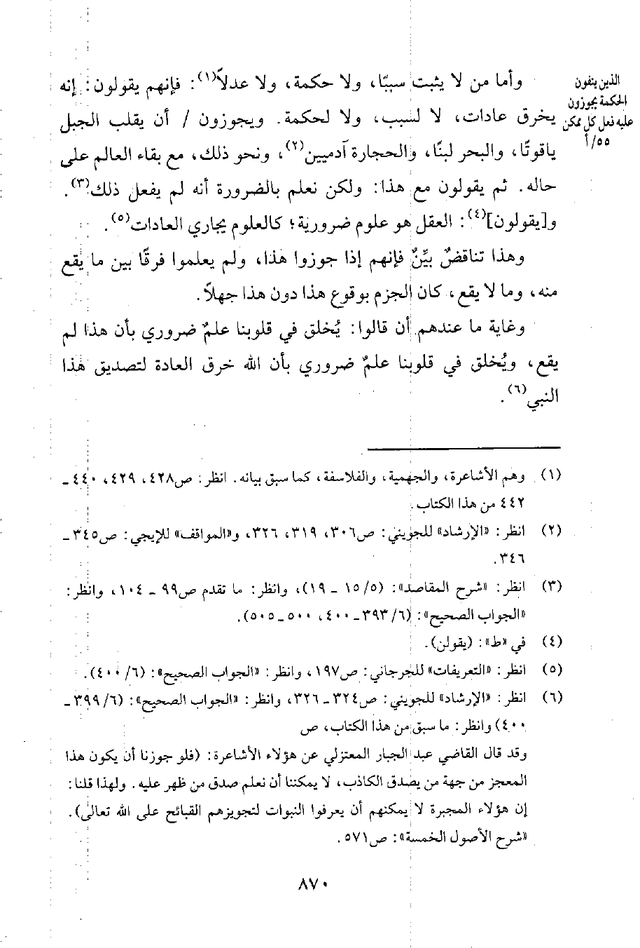 6 انظر: الإرشاد للجويني ص 324-326. وانظر: الجواب الصحيح 6399-400.