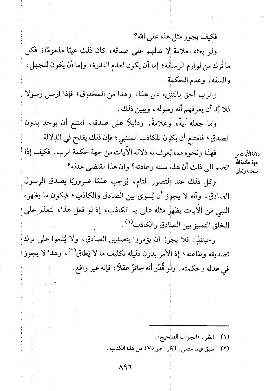 فهذا ونحوه ممّا يُعرف به دلالة الآيات من جهة حكمة الرب. فكيف إذا انضمّ إلى ذلك أنّ هذه سنّته وعادته؟ وأنّ هذا مقتضى عدله؟.