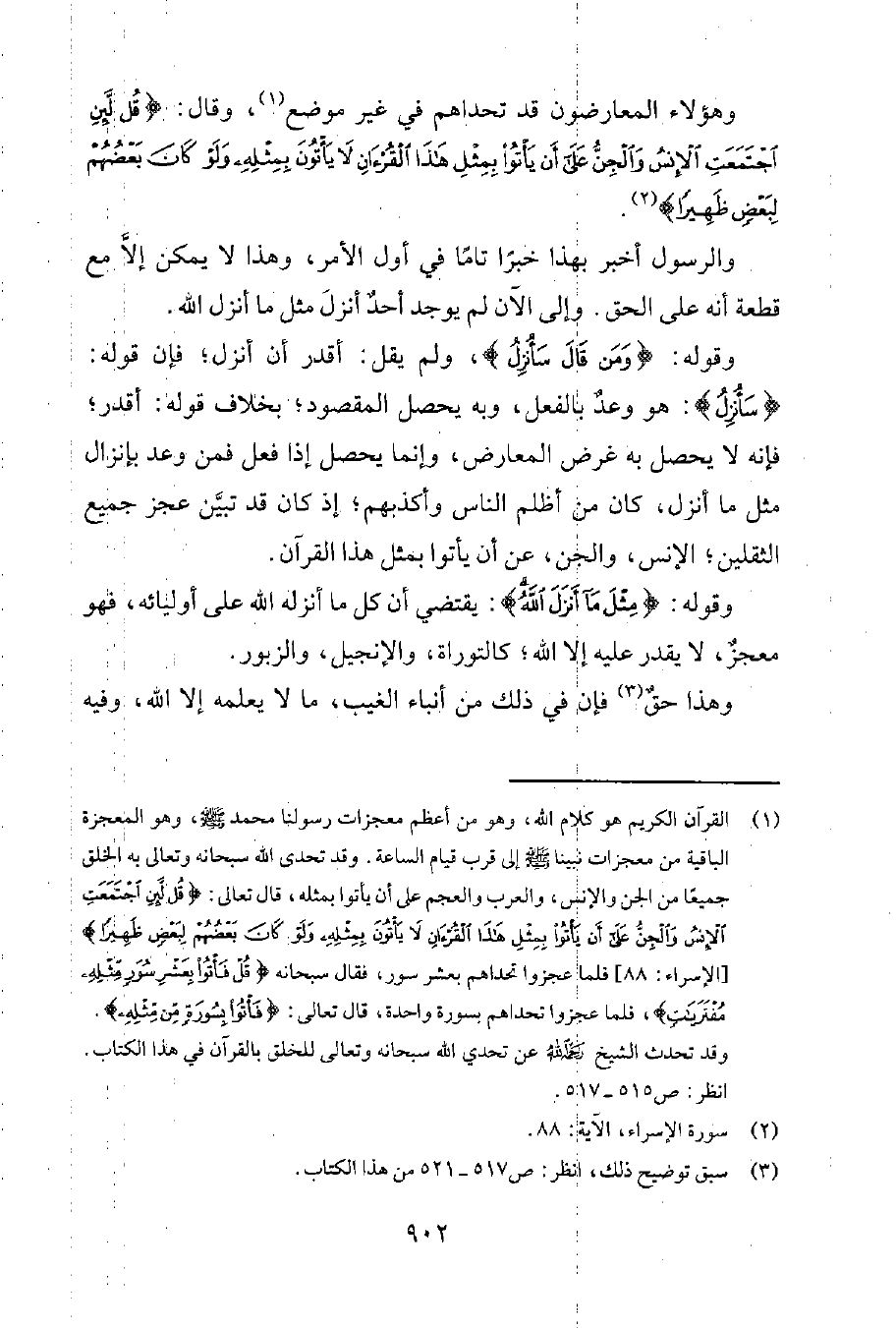 وقد تحدث الشيخ رحمه الله عن تحدي الله سبحانه وتعالى للخلق بالقرآن في هذا الكتاب. انظر ص 621-624.