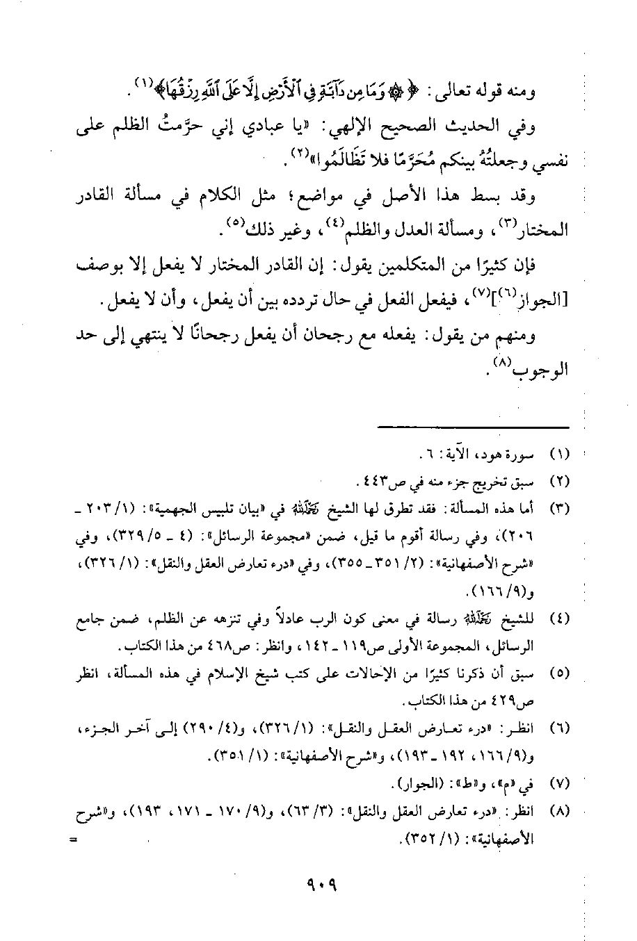 4 للشيخ رحمه الله رسالة في معنى كون الربّ عادلاً وفي تنزهه عن الظلم، ضمن جامع الرسائل، المجموعة الأولى ص 119-142. وانظر ص 566 من هذا الكتاب.