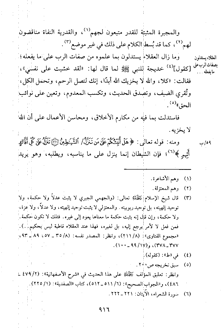 3 قال شيخ الإسلام رحمه الله تعالى: "والجهمي الجبري لا يثبت عدلاً ولا حكمة، ولا توحيد إلهيته، بل توحيد ربوبيته. والمعتزلي لا يثبت توحيد إلهيته، ولا عدلاً، ولا عزة، ولا حكمة، وإن قال إنه يثبت حكمة ما معناها يعود إلى غيره. فتلك لا تكون حكمة. فمن فعل لا لأمر يرجع إليه، بل لغيره، فهذا عند العقلاء قاطبة ليس بحكيم..". مجموع الفتاوى 8211. وانظر: المصدر نفسه 835-57، 89-93، 377-378، 1799-100.