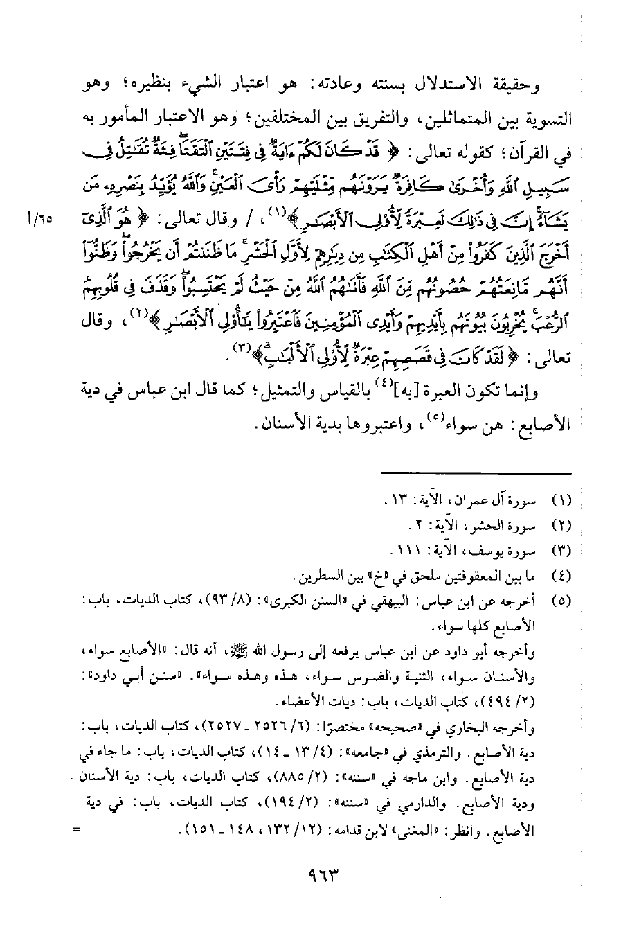وحقيقة الاستدلال بسنته وعادته: هو اعتبار الشيء بنظيره؛ وهو التسوية بين المتماثلين، والتفريق بين المختلفين؛ وهو الاعتبار المأمور به في القرآن؛ كقوله تعالى: {قَدْ كَانَ لَكُمْ آيَةٌ في فِئَتَيْنِ الْتَقَتا فِئَةٌ تُقَاتِلُ في سَبِيل اللهِ وَأُخْرَى كَافِرةٌ يَرَوْنَهُمْ مِثْلَيْهِمْ رَأْيَ العَينِ وَاللهُ يُؤَيِّدُ بِنَصْرِهِ مَنْ يَشَاء إِنَّ في ذَلِكَ لَعِبرَةً لأُولِي الأَبْصار} 1، وقال تعالى: {هُوَ الَّذِي أَخْرَجَ الَّذِينَ كَفَرُوا مِنْ أَهْلِ الكِتَابِ مِنْ دِيَارِهِمْ لأَوَّلِ الحَشْرِ مَا ظَنَنْتُمْ أَنْ يَخْرُجُوا وَظَنُّوا أَنَّهُم مَانِعَتُهُمْ حُصُونُهُمْ مِنَ اللهِ فَأَتَاهُمُ اللهُ مِنْ حَيثُ لَمْ يَحْتَسِبُوا وَقَذَفَ في قُلُوبِهِمُ الرُّعْبَ يُخْرِبُونَ بُيُوتَهُمْ بِأَيْدِيهِمْ وَأَيْدِي المُؤْمِنِينَ فَاعْتَبِرُوا يَا أُولي الأَبْصَار} 2، وقال تعالى: {لَقَدْ كَانَ في قَصَصِهِمْ عِبْرة لأُولي الأَلْبَابِ} 3.