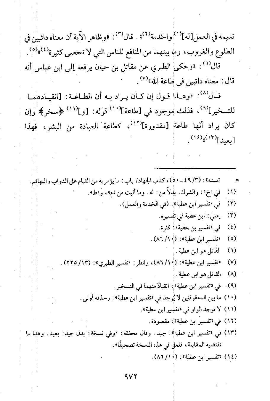 قال6: "وحكى الطبري عن مقاتل بن حيان يرفعه إلى ابن عباس أنه قال: معناه دائبين في طاعة الله" 7.