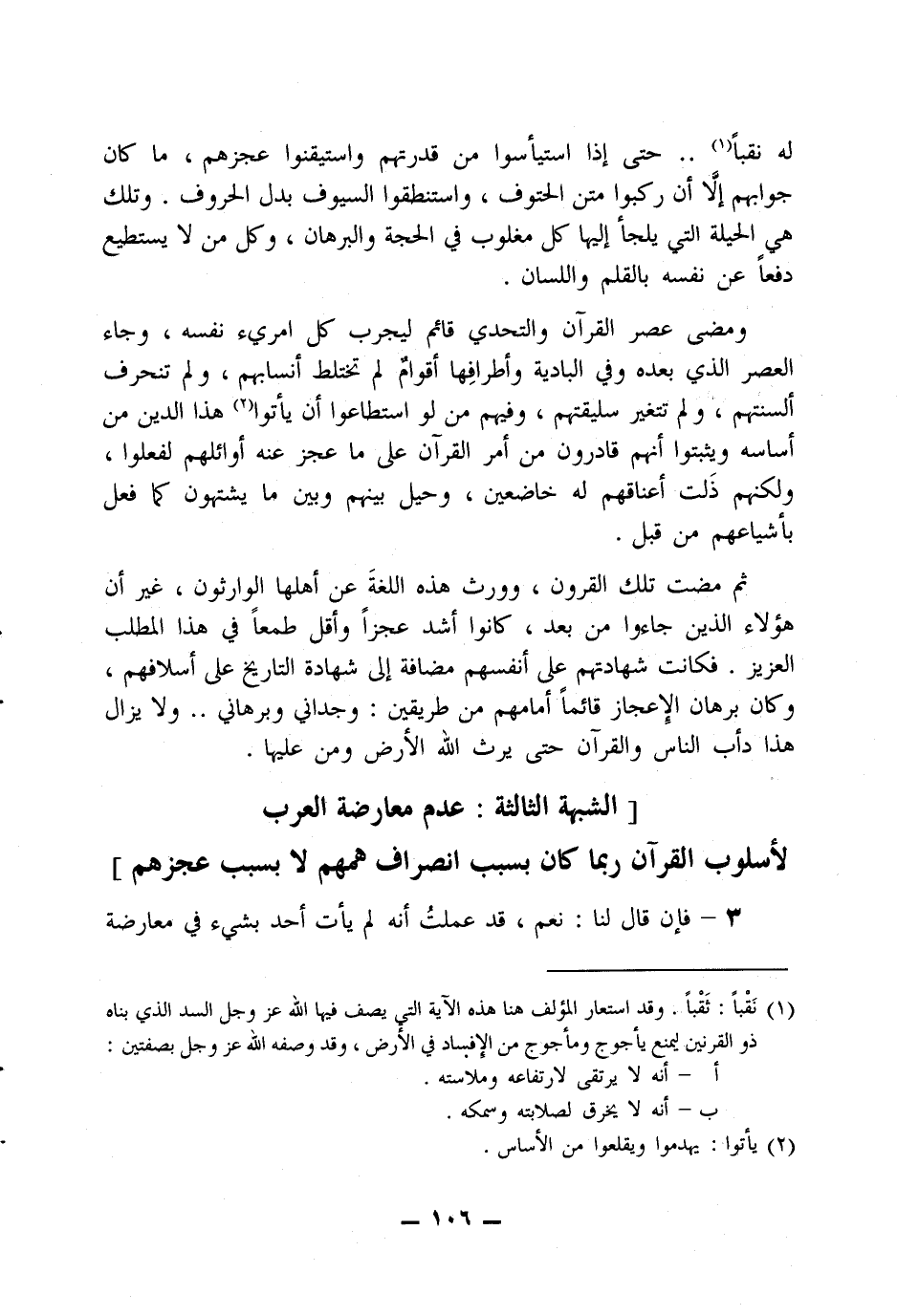 وأما الذين لا يعلمون عن تلك الحياة النبوية إلا قليلًا -وكثير ما هم- والذين يريدون أن يأخذوا حجة القرآن لنفسه من نفسه، فهؤلاء لا غنى لهم أن نتقدم بهم خطوة أخرى نبين لهم فيها أن هذا الكتاب الكريم يأبى بطبيعته أن يكون من صنع البشر، وينادي بلسان حاله أنه رسالة القضاء والقدر، حتى إنه لو وجد ملقًى في صحراء لأيقن الناظر فيه أن ليس من هذه الأرض منبعه ومنبته، وإنما كان من أفق السماء مطلعه ومهبطه.