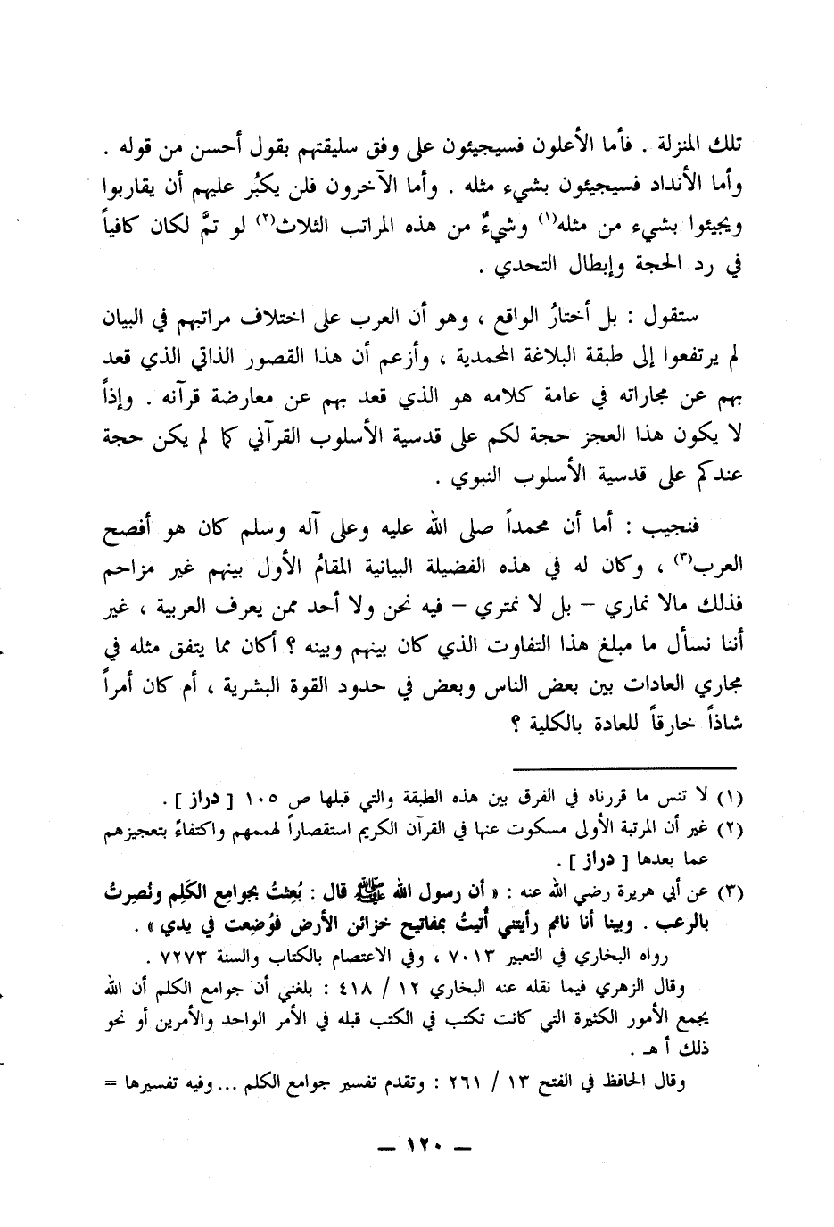 النفي والإثبات، وفيها الحقيقة والمجاز، وفيها الإطناب والإيجاز، وفيها الذكر والحذف، وفيها الابتداء والعطف، وفيها التعريف والتنكير، وفيها التقديم والتأخير، وهلم جرا.. ومن كل هذه المسالك ينفذ الناس إلى أغراضهم، غير ناكبين بوضع منها عن أوضاع اللغة جملة، بل في شعابها يتفرقون، وعند حدودها يلتقون.