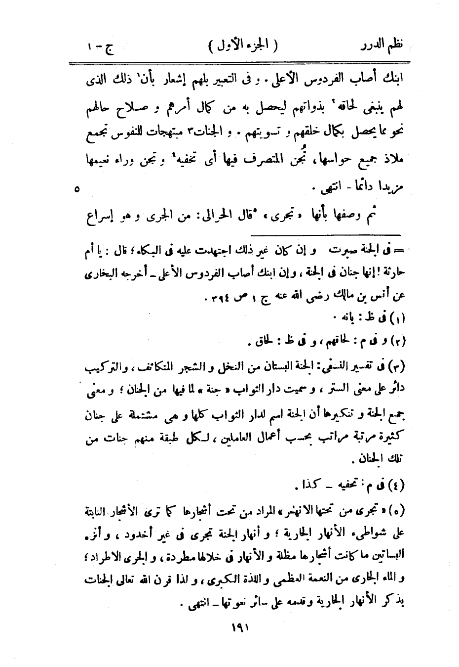 ابنك أصاب الفردوس الأعلى» وفي التعبير بلهم إشعار بأن ذلك الذي لهم ينبغي لحاقه بذواتهم ليحصل به من كمال أمرهم وصلاح حالهم نحو مما يحصل بكمال خلقهم وتسويتهم. والجنات مبتهجات للنفوس تجمع ملاذ جميع حواسها، تُجن المتصرف فيها أي تخفيه وتجن وراء نعيمها مزيداً دائماً - انتهى.