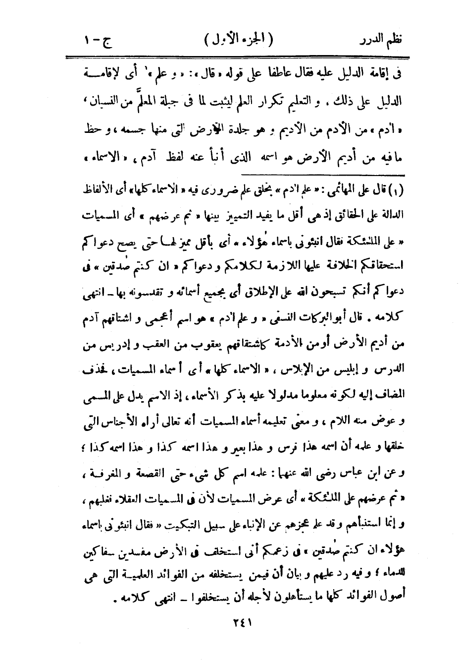 في إقامة الدليل عليه فقال عاطفاً على قوله: «قال» : {وعلم} أي لإقامة الدليل على ذلك، والتعليم تكرار العلم ليثبت لما في جبلة المعلَّم من النسيان، {آدم} من الأدم من الأديم وهو جلدة الأرض التي منها جسمه، وحظ ما فيه من أديم الأرض هو اسمه الذي أنبأ عنه لفظ آدم، {الأسماء}
