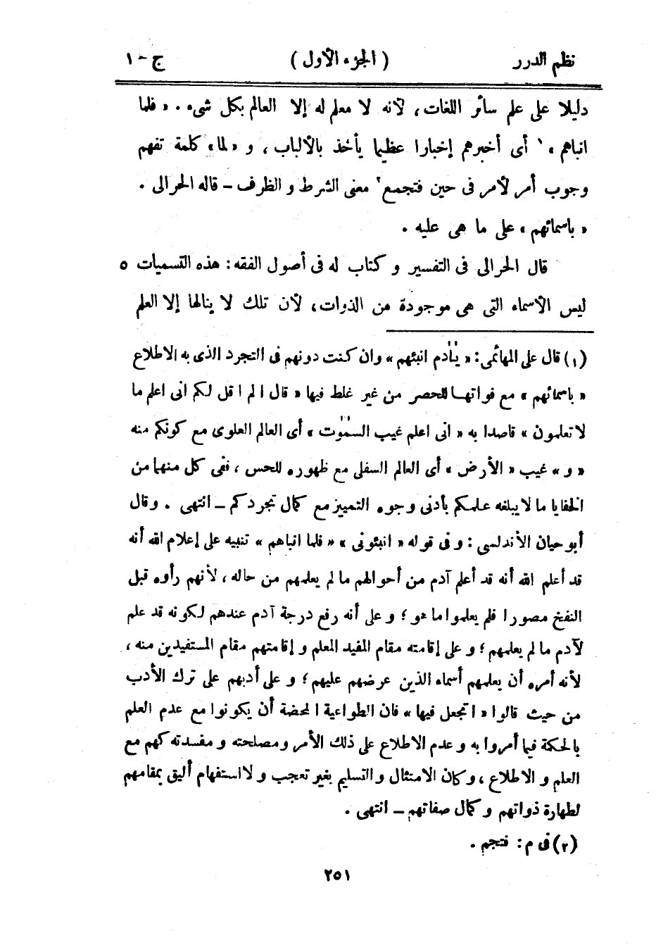 قال الحرالي في التفسير وكتاب له في أصول الفقه: هذه التسميات ليس الأسماء التي هي موجودة من الذوات، لأن تلك لا ينالها إلا العلم