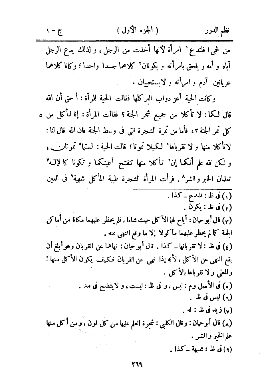 وكانت الحية أعز دواب البر كلها فقالت الحية للمرأة: أحق أن الله قال لكما: لا تأكلا من جميع شجر الجنة؟ فقالت المرأة: إنا لنأكل من كل ثمر الجنة، فأما من ثمرة الشجرة التي في وسط الجنة فإن الله قال لنا: لا تأكلا منها ولا تقرباها لكيلا تموتا؛ قالت الحية: لستما تموتان، ولكن الله علم أنكما إن تأكلا منها تنفتح أعينكما وتكونا كالإله تعلمان الخير والشر. فرأت المرأة الشجرة طيبة المأكل شهية في العين