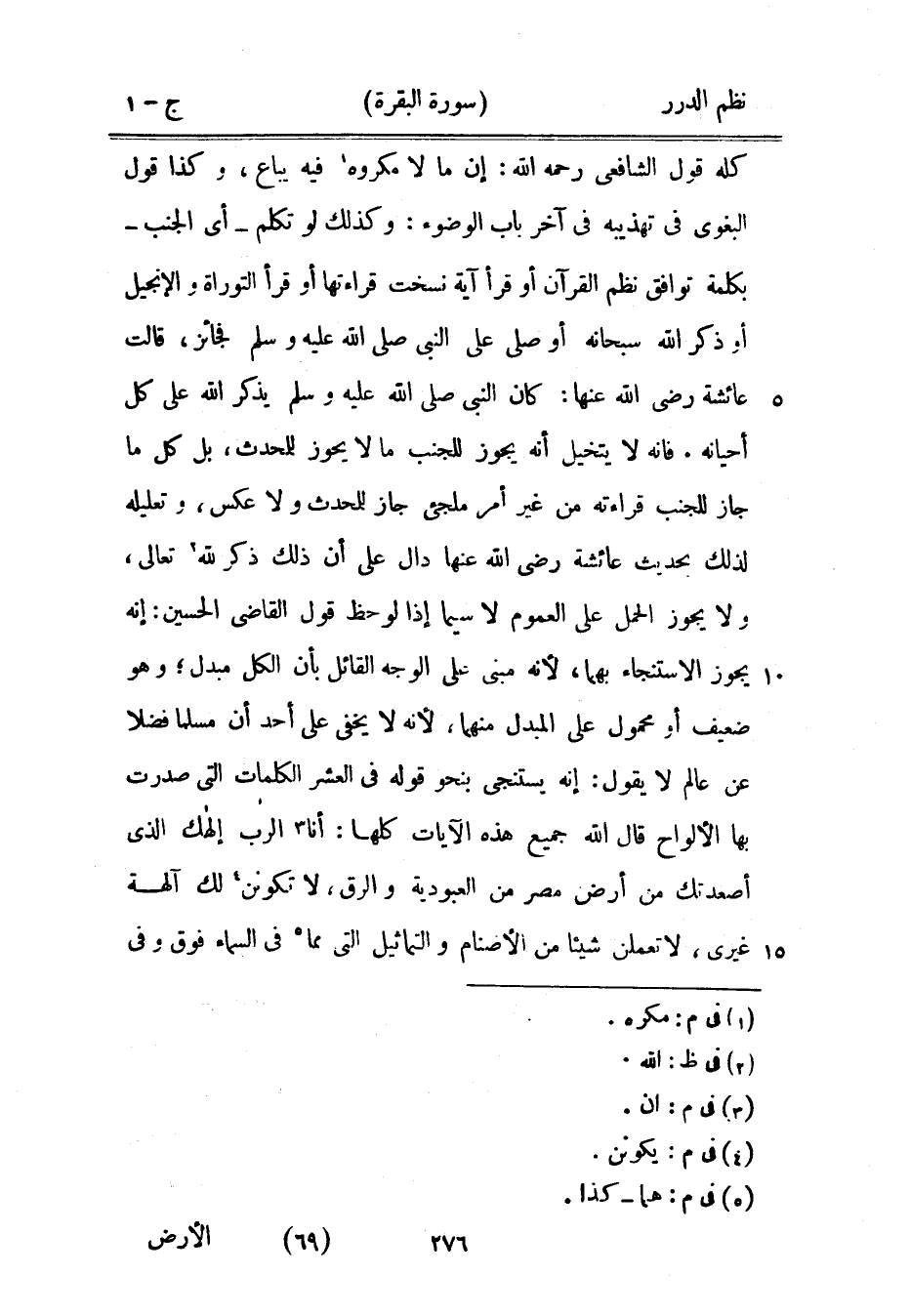 كله قول الشافعي رحمه الله: إن ما لا مكروه فيه يباع، وكذا قول البغوي في تهذيبه في آخر باب الوضوء: وكذلك لو تكلم - أي الجنب - بكلمة توافق نظم القرآن أو قرأ آية نسخت قراءتها أو قرأ التوراة والإنجيل أو ذكر الله سبحانه أو صلى على النبي صَلَّى اللهُ عَلَيْهِ وَسَلَّمَ فجائز، قالت عائشة رضي الله عنها: «كان النبي صَلَّى اللهُ عَلَيْهِ وَسَلَّمَ يذكر الله على كل أحيانه» فإنه لا يتخيل أنه يجوز للجنب ما لا يجوز للمحدث، بل كل ما جاز للجنب قراءته من غير أمر ملجىء جاز للمحدث ولا عكس، وتعليله لذلك بحديث عائشة رضي الله عنها دال على أن ذلك ذكر الله تعالى، ولا يجوز الحمل على العموم لا سيما إذا لوحظ قول القاضي الحسين: إنه يجوز الاستنجاء بهما، لأنه مبني على الوجه القائل بأن الكل مبدل؛ وهو ضعيف أو محمول على المبدل منهما، لأنه لا يخفى على أحد أن مسلماً فضلاً عن عالم لا يقول: إنه يستنجي بنحو قوله في العشر الكلمات التي صدرت بها الألواح قال الله جميع هذه الآيات كلها: أنا الرب إلهك الذي أصعدتك من أرض مصر من العبودية والرق، لا تكونن لك آلهة غيري، لا تعملن شيئاً من الأصنام والتماثيل التي مما في السماء فوق وفي