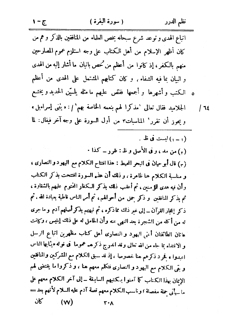 كتاب نظم الدرر في تناسب الآيات والسور (اسم الجزء: 1)