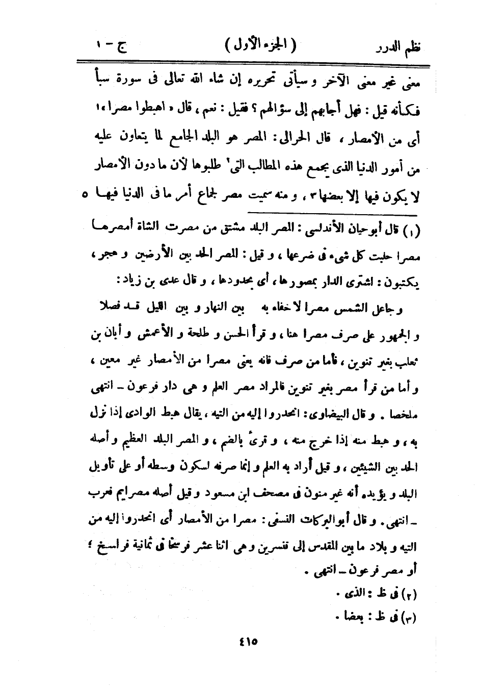 معنى غير معنى الآخر وسيأتي تحريره إن شاء الله تعالى في سورة سبأ فكأنه قيل: فهل أجابهم إلى سؤالهم؟ فقيل: نعم، قال {اهبطوا مصراً} أي من الأمصار، قال الحرالي: المصر هو البلد الجامع لما يتعاون عليه من أمور الدنيا الذي يجمع هذه المطالب التي طلبوها لأن ما دون الأمصار لا يكون فيها إلا بعضها، ومنه سميت مصر لجماع أمر ما في الدنيا فيها