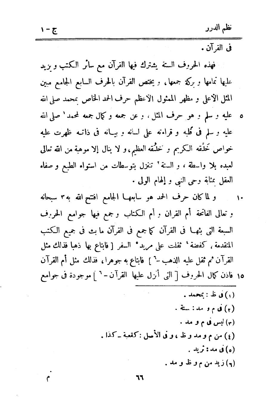 فهذه الحروف الستة يشترك فيها القرآن مع سائر الكتب ويزيد عليها تمامها وبركة جمعها، ويختص القرآن بالحرف السابع الجامع مبين المثل الأعلى ومظهر اللمثول الأعظم حرف الحمد الخاص بمحمد (صَلَّى اللهُ عَلَيْهِ وَسَلَّمَ) وهو حرف المثل. وعن جمعه وكمال جمعه لمحمد (صَلَّى اللهُ عَلَيْهِ وَسَلَّمَ) في قلبه وقراءته على لسانه وبيانه في ذاته ظهرت عليه خواص خلقه الكريم وخلقه العظيم، ولا ينال إلا موهبة من الله تعالى لعبده بال واسطة والستة تتنزل بتوسطات من استواء الطبع وصفاء العقل بمثابة وحي النبي وإلهام الولي.