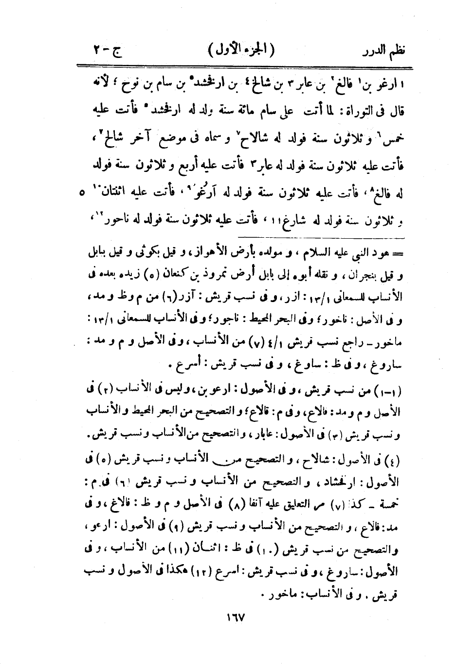 بن فالغ بن عابر بن شالخ بن أرفخشد بن سام بن نوح؛ لأنه قال في التوراة: لما أتت على سام مائة سنة ولد له أرفخشد فأتت عليه خمس وثلاثون سنة فولد له شالاح وسماه في موضع آخر شالح، فأتت عليه ثلاثون سنة فولد له عابر فأتت عليه أربع وثلاثون سنة فولد له فالغ، فأتت عليه ثلاثون سنة فولد له آرغُو، فأتت عليه اثنتان وثلاثون سنة فولد له شارغ فأتت عليه ثلاثون سنة فولد له ناحور،