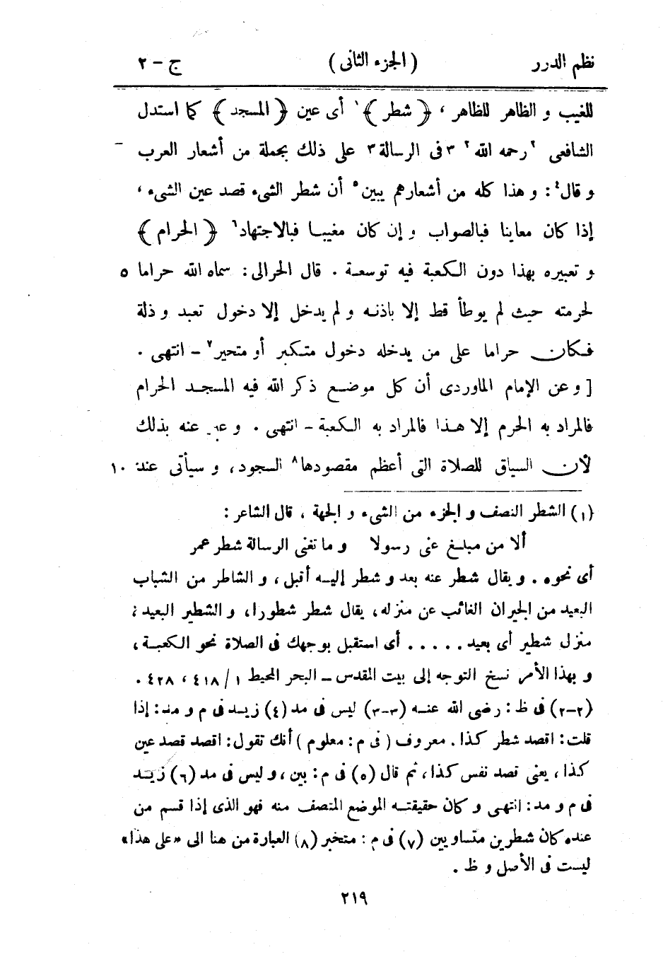 للغيب والظاهر للظاهر، {شطر} أي عين {المسجد} كما استدل الشافعي رحمه الله في الرسالة على ذلك بجملة من أشعار العرب وقال: وهذا كله من أشعارهم يبين أن شطر الشيء قصد عين الشيء، إذا كان معايناً فبالصواب وإن كان مغيباً فبالاجتهاد {الحرام} وتعبيره بهذا دون الكعبة فيه توسعة. قال الحرالي: سماه الله حراماً لحرمته حيث لم يوطأ قط إلا بإذنه ولم يدخل إلا دخول تعبد وذلة فكان حراماً على من يدخله دخول متكبر أو متحير - انتهى. وعن الإمام الماوردي أن كل موضع ذكر الله فيه المسجد الحرام فالمراد به الحرم إلا هذا فالمراد به الكعبة - انتهى. وعبر عنه بذلك لأن السياق للصلاة التي أعظم مقصودها السجود، وسيأتي عند