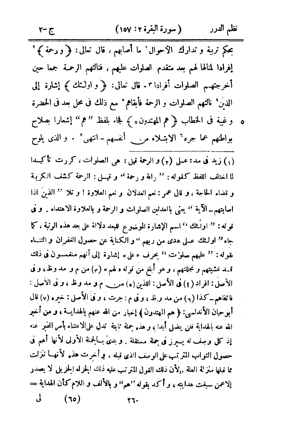 بحكم تربية وتدارك الأحوال ما أصابهم، قال تعالى: {ورحمة} إفراد لمنالها لهم بعد متقدم الصلوات عليهم، فنالتهم الرحمة جمعاً حين أخرجتهم الصلوات أفراداً. قال تعالى: {وأولئك} إشارة إلى الذين نالتهم الصلوات والرحمة فأبقاهم مع ذلك في محل بعد في الحضرة وغيبة في الخطاب {هم المهتدون} فجاء بلفظ {هم} إشعاراً بصلاح بواطنهم عما جره الابتلاء من أنفسهم - انتهى. والذي يلوح