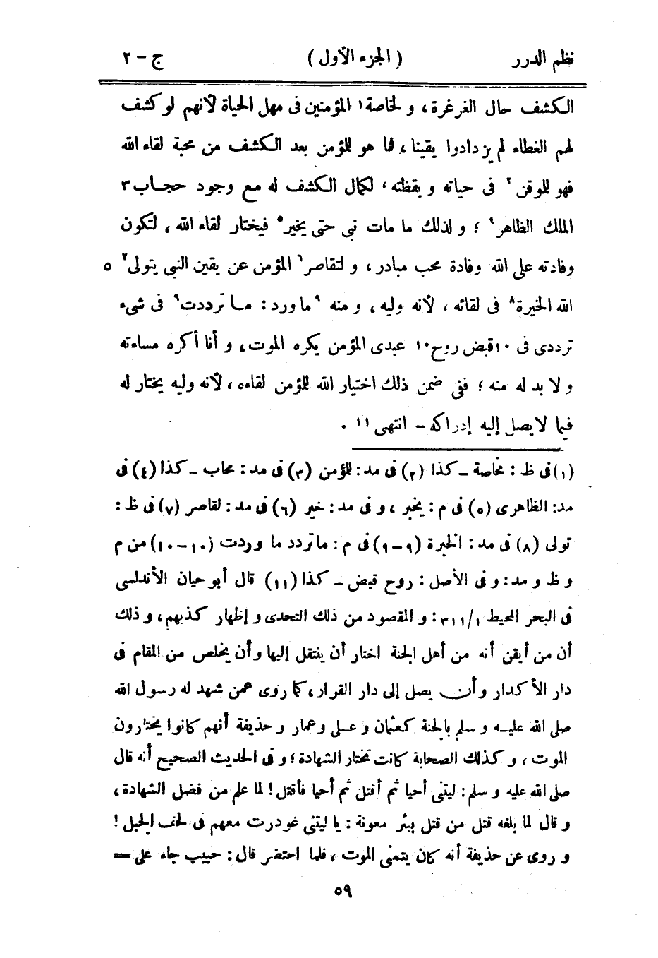 الكشف حال الغرغرة، ولخاصة المؤمنين في مهل الحياة لأنهم لو كشف لهم الغطاء لم يزدادوا يقيناً، فما هو للمؤمن بعد الكشف من محبة لقاء الله فهو للموقن في حياته ويقظته، لكمال الكشف له مع وجود حجاب الملك الظاهر؛ ولذلك ما مات نبي حتى يخير فيختار لقاء الله، لتكون وفادته على الله وفادة محب مبادر، ولتقاصر المؤمن عن يقين النبي يتولى الله الخيرة في لقائه، لأنه وليه، ومنه ما ورد: «ما ترددت في شيء ترددي في قبض روح عبدي المؤمن يكره الموت، وأنا أكره مساءته ولا بد له منه» ففي ضمن ذلك اختيار الله للمؤمن لقاءه، لأنه وليه يختار له فيما لا يصل إليه إدراكه - انتهى.