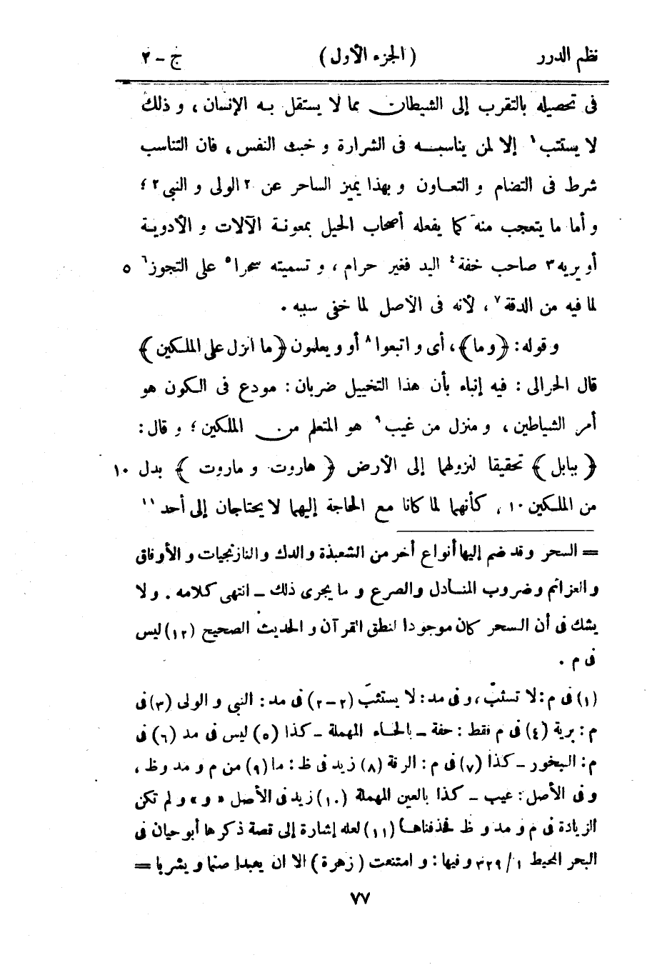 في تحصيله بالتقرب إلى الشيطان مما لا يستقل به الإنسان، وذلك لا يستتب إلا لمن يناسبه في الشرارة وخبث النفس، فإن التناسب شرط في التضام والتعاون وبهذا يميز الساحر عن الولي والنبي؛ وأما ما يتعجب منه كما يفعله أصحاب الحيل بمعونة الآلات والأدوية أو يريه صاحب خفة اليد فغير حرام، وتسميته سحراً على التجوز لما فيه من الدقة، لأنه في الأصل لما خفي سببه.