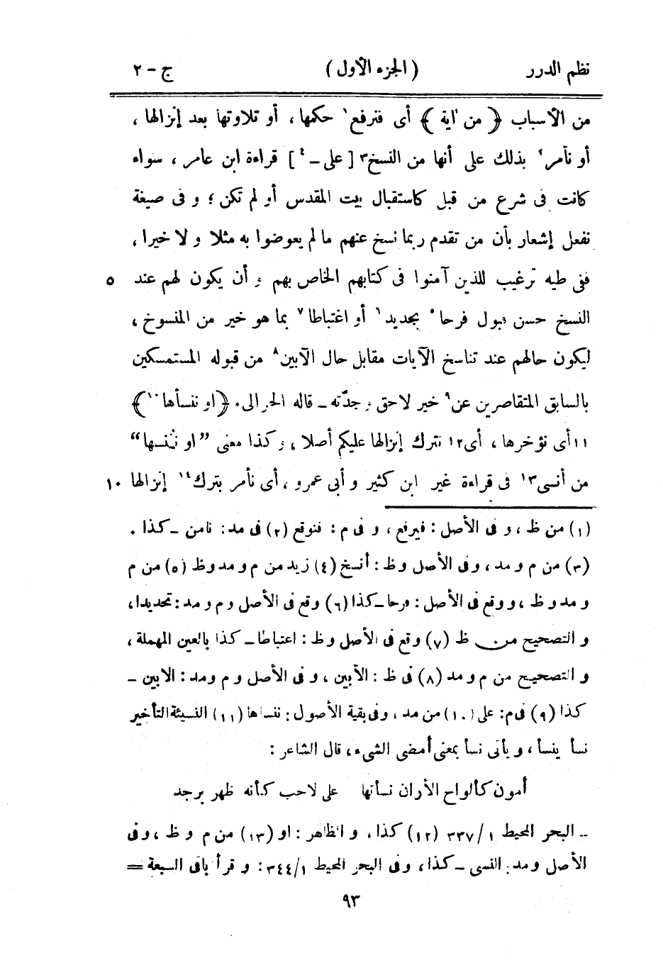 من الأسباب {من آية} أي فنرفع حكمها، أو تلاوتها بعد إنزالها، أو نأمر بذلك على أنها من النسخ على قراءة ابن عامر، سواء كانت في شرع من قبل كاستقبال بيت المقدس أو لم تكن؛ وفي صيغة نفعل إشعار بأن من تقدم ربما نسخ عنهم ما لم يعوضوا به مثلاً ولا خيراً، ففي طيه ترغيب للذين آمنوا في كتابهم الخاص بهم وأن يكون لهم عند النسخ حسن قبول فرحاً بجديد أو اغتباطاً بما هو خير من المنسوخ، ليكون حالهم عند تناسخ الآيات مقابل حال الآبين من قبوله المستمسكين بالسابق المتقاصرين عن خير لاحق وجدِّته - قاله الحرالي: {أو ننسأها} أي نؤخرها، أي نترك إنزالها عليكم أصلاً، وكذا معنى {أو نُنسها} من أنسى في قراءة غير ابن كثير وأبي عمرو، أي نأمر بترك إنزالها