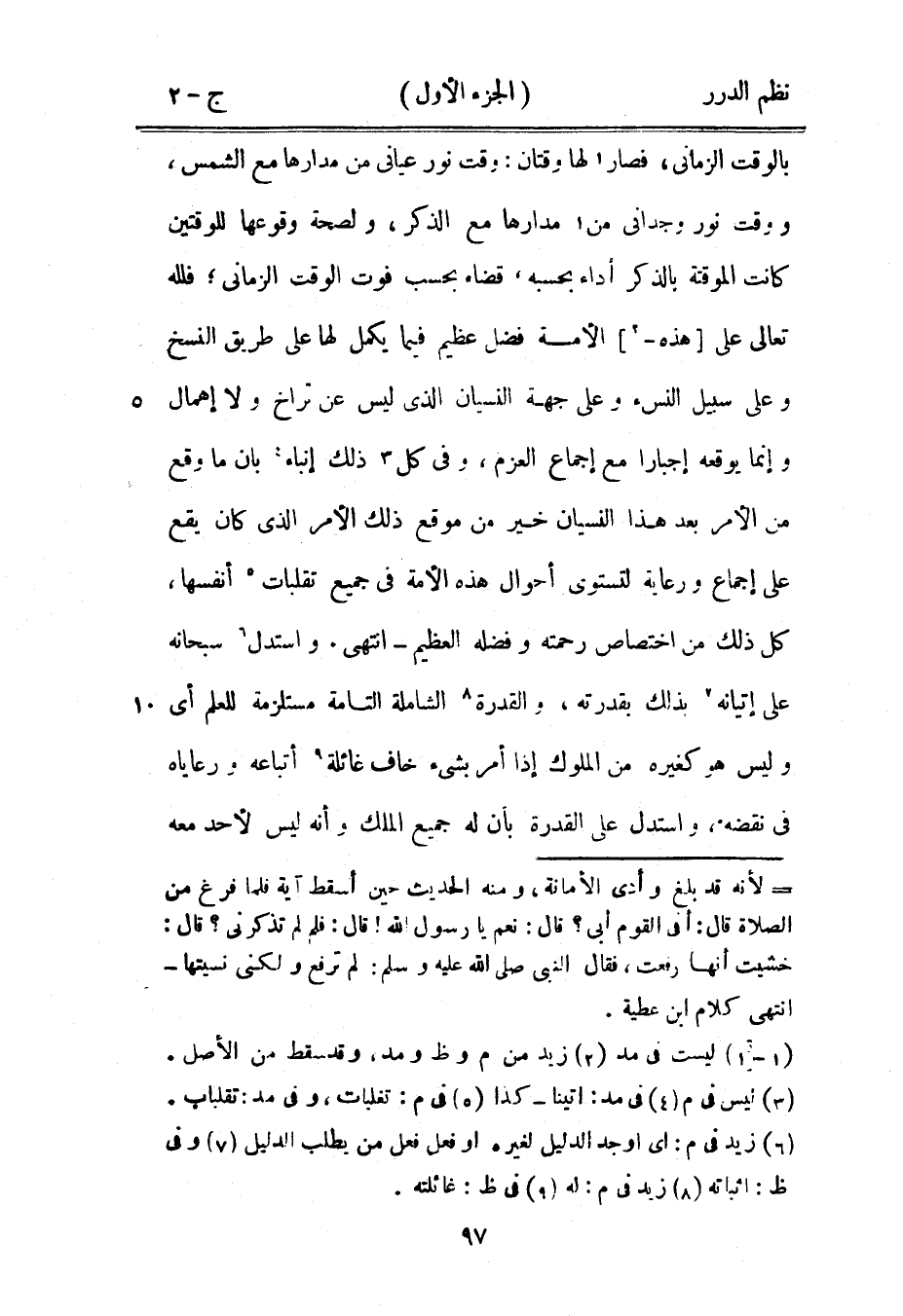بالوقت الزماني، فصار لها وقتان: وقت نور عياني من مدارها مع الشمس، ووقت نور وجداني من مدارها مع الذكر، ولصحة وقوعها للوقتين كانت الموقتة بالذكر أداء بحسبه، قضاء بحسب فوت الوقت الزماني؛ فلله تعالى على هذه الأمة فضل عظيم فيما يكمل لها على طريق النسخ وعلى سبيل النسء وعلى جهة النسيان الذي ليس عن تراخ ولا إهمال وإنما يوقعه إجباراً مع إجماع العزم، وفي كل ذلك إنباء بأن ما وقع من الأمر بعد هذا النسيان خير من موقع ذلك الأمر الذي كان يقع على إجماع ورعاية لتستوي أحوال هذه الأمة في جميع تقلبات أنفسها، كل ذلك من اختصاص رحمته وفضله العظيم - انتهى. واستدل سبحانه على إتيانه بذلك بقدرته، والقدرة الشاملة التامة مستلزمة للعلم أي وليس هو كغيره من الملوك إذا أمر بشيء خاف غائلة أتباعه ورعاياه في نقضه، واستدل على القدرة بأن له جميع الملك وأنه ليس لأحد معه