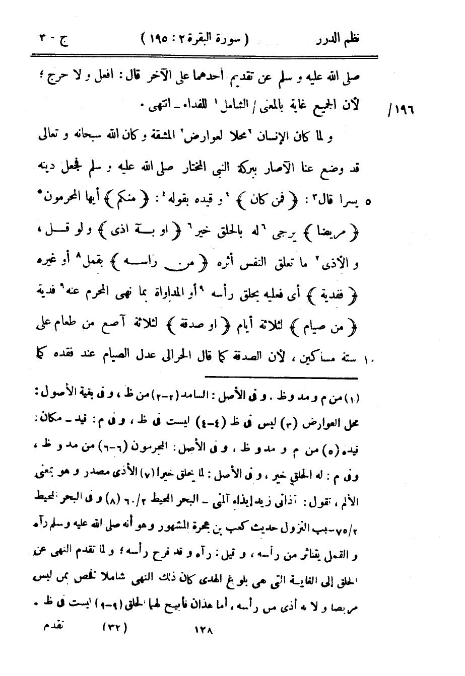 عن تقديم أحدهما على الآخر قال: «افعل ولا حرج» ، لأن الجميع غاية بالمعنى الشامل للفداء - انتهى.