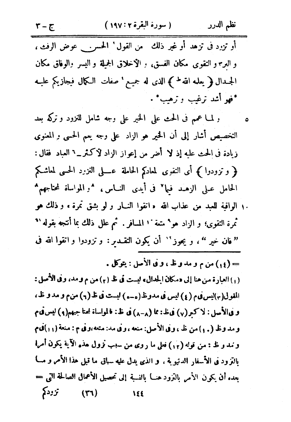 «اتقوا النار ولو بشق تمرة» وذلك هو ثمرة التقوى؛ والزاد هو متعة المسافر. ثم علل ذلك بما أنتجه بقوله {فإن خير} ، ويجوز أن يكون التقدير: وتزودوا واتقوا الله في