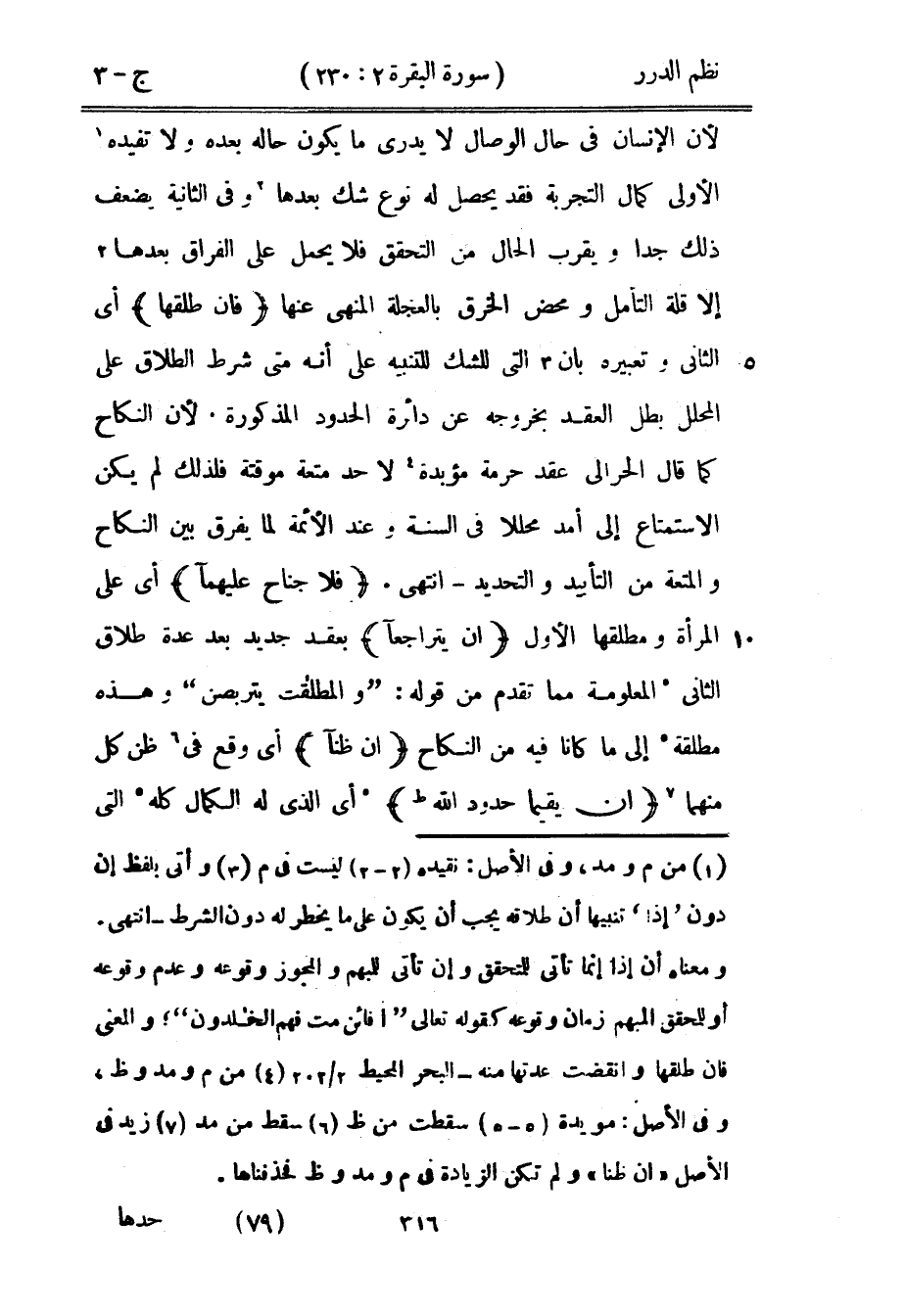 لأن الإنسان في حال الوصال لا يدري ما يكون حاله بعده ولا تفيده الأولى كمال التجربة فقد يحصل له نوع شك بعدها وفي الثانية يضعف ذلك جداً ويقرب الحال من التحقق فلا يحمل على الفراق بعدها إلا قلة التأمل ومحض الخرق بالعجلة المنهي عنها {فإن طلقها} أي الثاني وتعبيره بإن التي للشك للتنبيه على أنه متى شرط الطلاق على المحلل بطل العقد بخروجه عن دائرة الحدود المذكورة. لأن النكاح كما قال الحرالي عقد حرمة مؤبدة لا حد متعة مؤقتة فلذلك لم يكن الاستمتاع إلى أمد محللاً في السنة وعند الأئمة لما يفرق بين النكاح والمتعة من التأبيد والتحديد - انتهى.