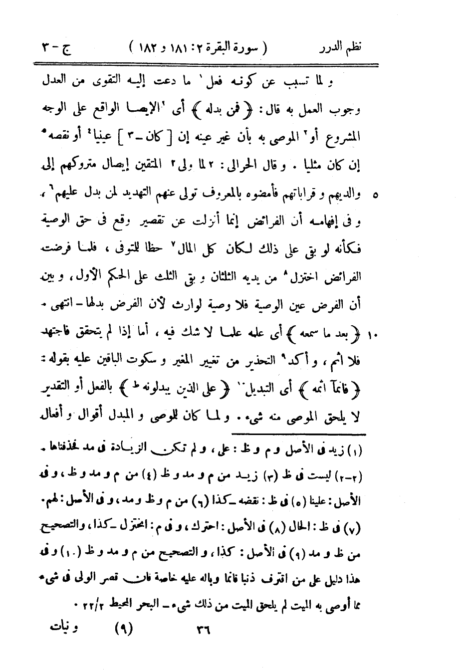 ولما تسبب عن كونه فعل ما دعت إليه التقوى من العدل وجوب العمل به قال: {فمن بدله} أي الإيصاء الواقع على الوجه المشروع أو الموصى به بأن غير عينه إن كان عينياً أو نقصه إن كان مثلياً. وقال الحرالي: لما ولي المتقين إيصال متروكهم إلى والديهم وقراباتهم فأمضوه بالمعروف تولى عنهم التهديد لمن بدل عليهم، وفي إفهامه أن الفرائض إنما أنزلت عن تقصير وقع في حق الوصية فكأنه لو بقي على ذلك لكان كل المال حظاً للمتوفى، فلما فرضت الفرائض اختزل من يديه الثلثان وبقي الثلث على الحكم الأول، وبين أن الفرض عين الوصية فلا وصية لوارث لأن الفرض بدلها - انتهى.