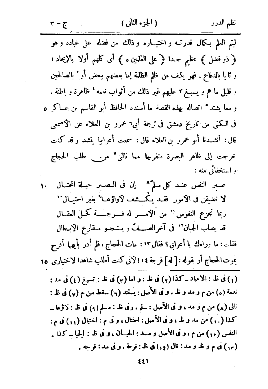 فقلت ما وراءك يا أعربي؟ فقال: مات الحجاج، فلم أدر بأيهما أفرح بموت الحجاج أو بقوله: له فرجة! لأني كنت أطلب شاهداً لاختياري