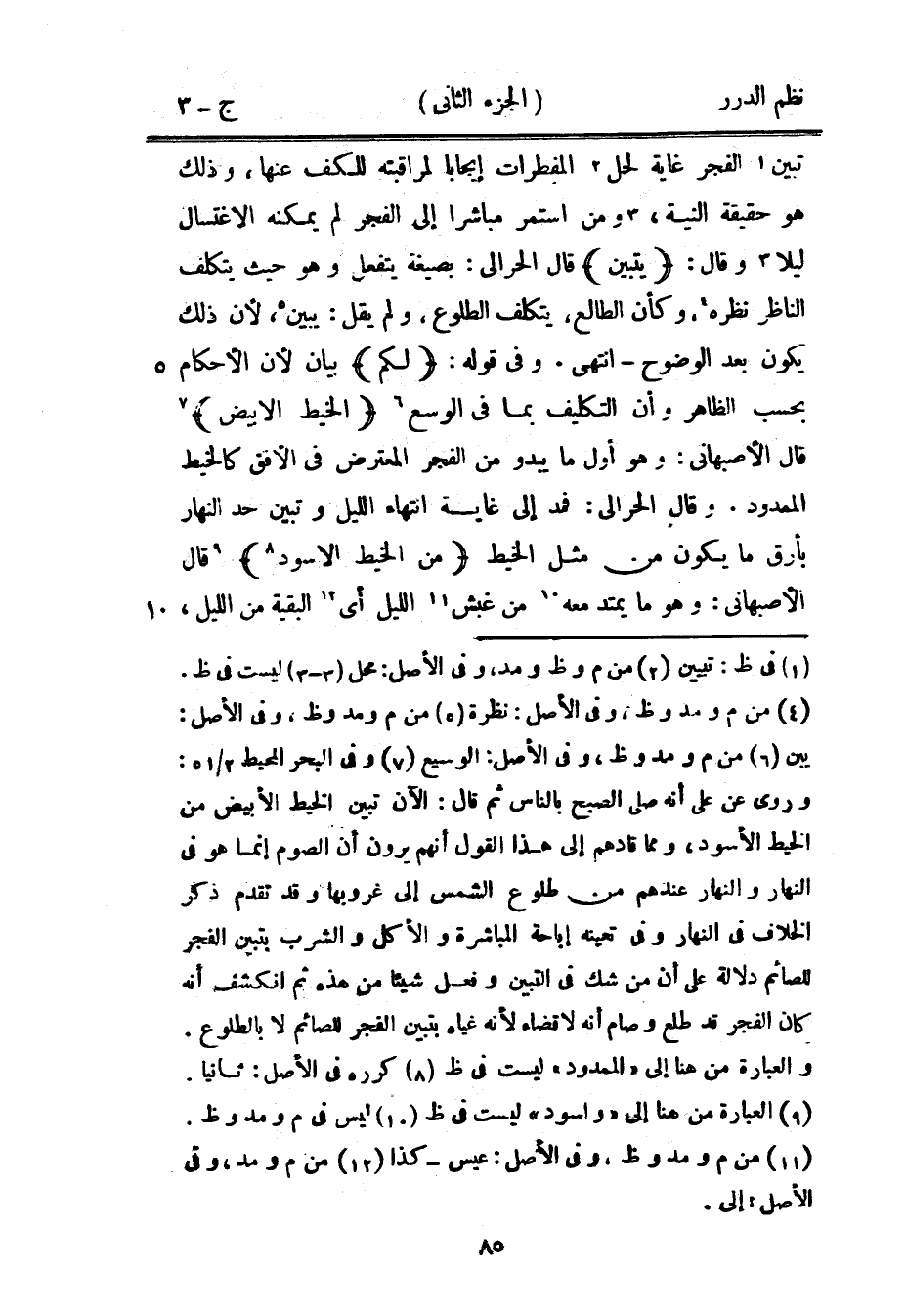 تبين الفجر غاية لحل المفطرات إيجاباً لمراقبته للكف عنها، وذلك هو حقيقة النية، ومن استمر مباشراً إلى الفجر لم يمكنه الاغتسال ليلاً وقال: {يتبين} قال الحرالي: بصيغة يتفعل وهو حيث يتكلف الناظر نظره، وكأن الطالع، يتكلف الطلوع، ولم يقل: يبين، لأن ذلك يكون بعد الوضوح - انتهى. وفي قوله: {لكم} بيان لأن الأحكام بحسب الظاهر وأن التكليف بما في الوسع {الخيط الأبيض} قال الأصبهاني: وهو أول ما يبدو من الفجر المعترض في الأفق كالخيط الممدود. وقال الحرالي: فمد إلى غاية انتهاء الليل وتبين حد النهار بأرق ما يكون من مثل الخيط {من الخيط الأسود} قال الأصبهاني: وهو ما يمتد معه من غبش الليل أي البقية من الليل،