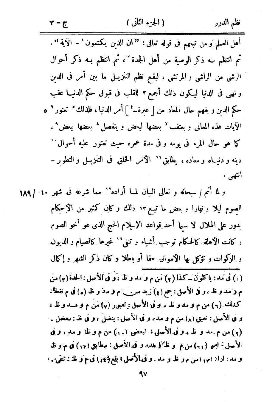 أهل العلم ومن تبعهم في قوله تعالى: {إن الذين يكتمون} [البقرة: 159] ، ثم انتظم به ذكر الوصية من أهل الجدة، ثم انتظم به ذكر أحوال الرشى من الراشي والمرتشي، ليقع نظم التنزيل ما بين أمر في الدين ونهي في الدنيا ليكون ذلك أجمع للقلب في قبول حكم الدنيا عقب حكم الدين ويفهم حال المعاد من عبرة أمر الدنيا، فلذلك تعتور الآيات هذه المعاني ويعتقب بعضها لبعض ويتفصل بعضها ببعض، كما هو حال المرء في يومه وفي مدة عمره حيث تعتور عليه أحوال دينه ودنياه ومعاده، يطابق الأمر الخلق في التنزيل والتطور - انتهى.