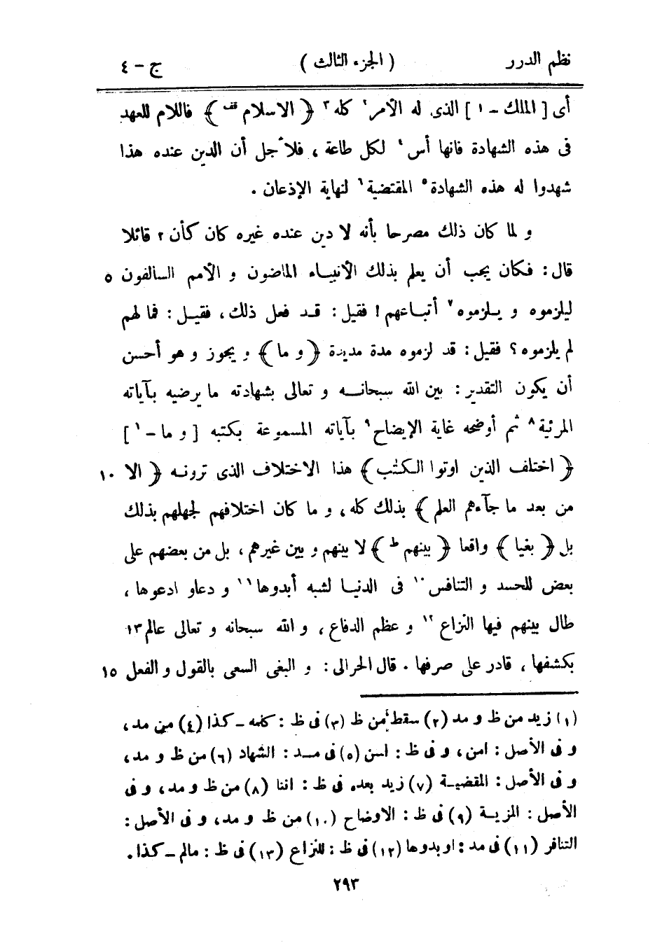 ولما كان ذلك مصرحاً بأنه لا دين عنده غيره كان كأن قائلاً قال: فكان يجب أن يعلم بذلك الأنيباء الماضون والأمم السالفون ليلزموه ويلزموه أتباعهم! فقيل: قد فعل ذلك، فقيل: فما لهم لم يلزموه؟ فقيل: قد لزموه مدة مديدة {وما} ويجوز وهو أحسن أن يكون التقدير: بين الله سبحانه وتعالى بشهادته ما يرضيه بآياته المرئية ثم أوضحة غاية الإيضاح بآياته المسموعة بكتبه وما {اختلف الذين أوتوا الكتاب} هذا الاختلاف الذي ترونه {إلا من بعد ما جاءهم العلم} بذلك كله، وما كان اختلافهم لجهلهم بذلك بل {بغياً} واقعاً {بينهم} لا بينهم وبين غيرهم، بل من بعضهم على بعض للحسد والتنافس في الدنيا لشبه أبدوها ودعاو ادعوها، طال بينهم فيها النزاع وعظم الدفاع، والله سبحانه وتعالى عالم بكشفها، قادر على صرفها. قال الحرالي: والبغي السعي بالقول والفعل