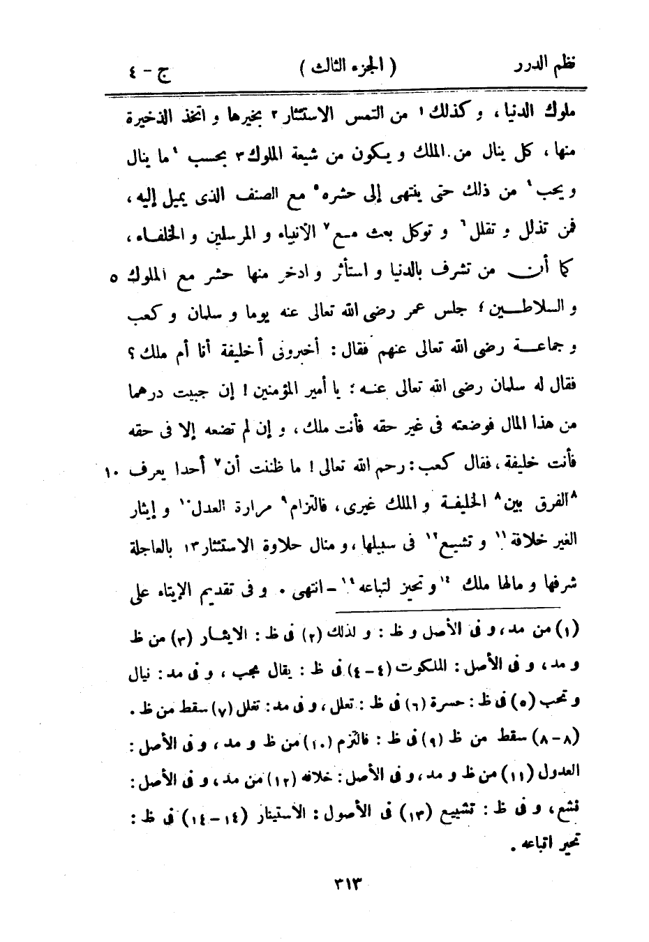 ملوك الدنيا، وكذلك من التمس الاستئثار بخيرها واتخذ الذخيرة منها، كل ينال من الملك ويكون من شيعة الملوك بحسب ما ينال ويحب من ذلك حتى ينتهي إلى حشره مع الصنف الذي يميل إليه، فمن تذلل وتقلل وتوكل بعث مع الأنبياء والمرسلين والخلفاء، كما أن من تشرف بالدنيا واستأثر وادخر منها حشر مع الملوك والسلاطين؛ جلس عمر رضي الله تعالى عنه يوماً وسلمان وكعب وجماعة رضي الله تعالى عنهم فقال: أخبروني أخليفة أنا أم ملك؟ فقال له سلمان رضي الله عنه: يا أمير المؤمنين! إن جبيت درهماً من هذا المال فوضعته في غيره حقه فأنت ملك، وإن لم تضعه إلا في حقه فأنت خليفة، فقال كعب: رحم الله تعالى! ما ظننت أن أحداً يعرف الفرق بين الخليفة والملك غيري، فالتزام مرارة العدل وإيثار الغير خلافة وتشيع في سبيلها، ومنال حلاوة الاستئثار بالعاجلة شرفها ومالها ملك وتحيز لتباعه - انتهى.