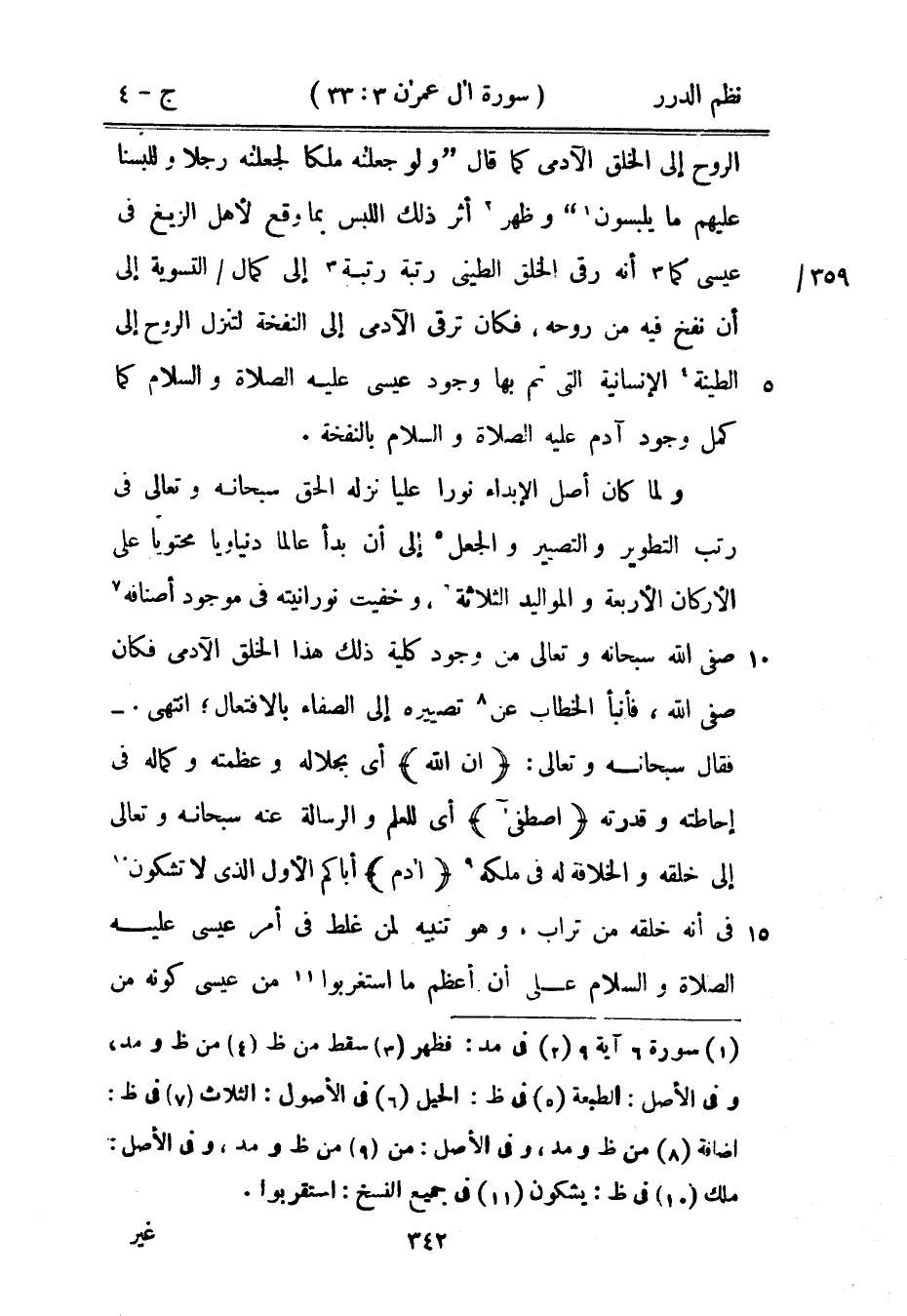 {ولو جعلناه ملكاً لجعلناه رجلاً وللبسنا عليهم ما يلبسون} [الأنعام: 9] وظهر أثر ذلك اللبس بما وقع لأهل الزيغ في عيسى كما أنه رقى الخلق الطيني رتبة رتبة إلى كمال التسوية إلى أن نفخ فيه من روحه، فكان ترقي الآدمي إلى النفخة لتنزل الروح إلى الطينة الإنسانية التي تم بها وجود عيسى عليه الصلاة والسلام كما كمل وجود آدم عليه الصلاة والسلام بالنفخة.