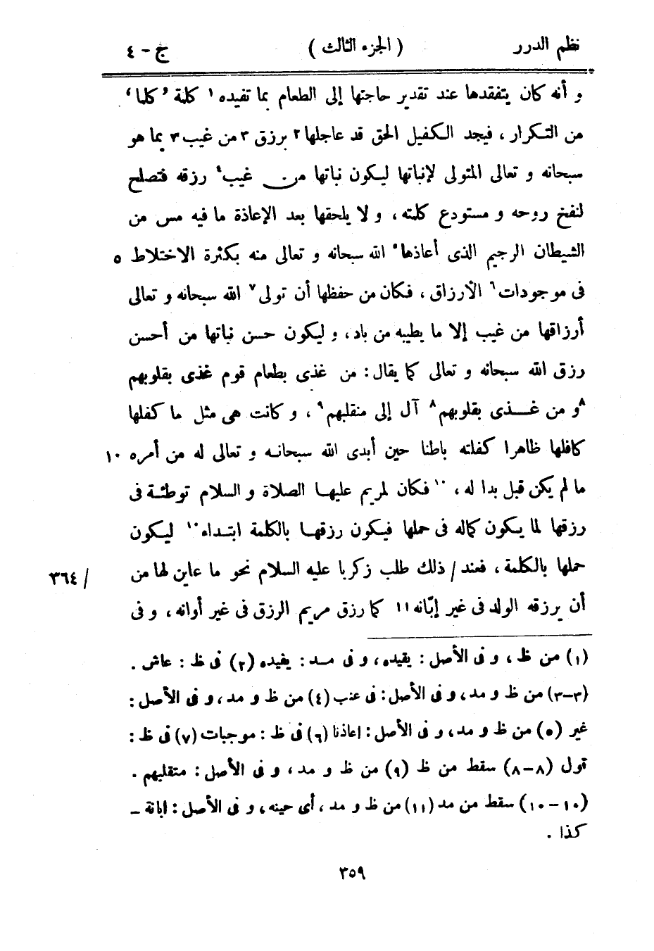 وأنه كان يتفقدها عند تقدير حاجتها إلى الطعام بما تفيده كلمة {كلما} من التكرار، فيجد الكفيل الحق قد عاجلها برزق من غيب بما هو سبحانه وتعالى المتولي لإنباتها ليكون نباتها من غيب رزقه فتصلح لنفخ روحه ومستودع كلمته، ولا يلحقها بعد الإعاذة ما فيه مس من الشيطان الرجيم الذي أعاذها الله سبحانه وتعالى منه بكثرة الاختلاط في موجودات الأرزاق، فكان من حفظها أن تولى الله سبحانه وتعالى أرزاقها من غيب إلا ما يطيبه من باد، وليكون حسن نباتها من أحسن رزق الله سبحانه وتعالى كما يقال: من غذي بطعام قوم غذي بقلوبهم ومن غذي بقلوبهم آل إلى منقلبهم، وكانت هي مثل ما كفلها كافلها ظاهراً كفلته باطناً حين أبدى الله سبحانه وتعالى له من أمره ما لم يكن قبل بداً له، فكان لمريم عليها الصلاة والسلام توطئة في رزقها لما يكون كماله في حملها فيكون رزقها بالكلمة ابتداء ليكون حملها بالكلمة، فعند ذلك طلب زكريا عليه السلام نحو ما عاين لها من أن يرزقه الولد في غير إبّانه كما رزق مريم الرزق في غير أوانه، وفي