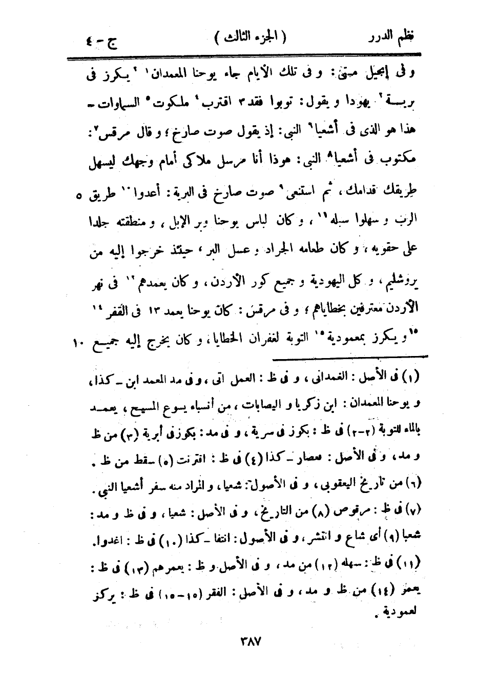 وفي إنجيل متّى: وفي تلك الأيام جاء يوحنا المعمدان يكرز في برية يهودا ويقول: توبوا فقد اقترب ملكوت السماوات - هذا هو الذي في أشعيا النبي: إذ يقول صوت صارخ، وقال مرقس: مكتوب في أشعيا النبي: هوذا أنا مرسل ملاكي أمام وجهك ليسهل طريقك قدامك، ثم استنعى صوت صارخ في البرية: أعدوا طريق الرب وسهلوا سبله، وكان لباس يوحنا وبر الإبل، ومنطقته جلداً على حقويه، وكان طعامه الجراد وعسل البر، حينئذٍ خرجوا إليه من يروشليم، وكل اليهودية وجميع كور الأردن، وكان يعمدهم في نهر الأردن معترفين بخطاياهم؛ وفي مرقس: كان يوحنا يعمد في القفر ويكرز بمعمودية التوبة لغفران الخطايا، وكان يخرج إليه جميع