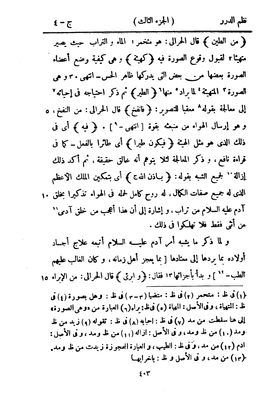 {من الطين} قال الحرالي: هو متخمر الماء والتراب حيث يصير متهيئاً لقبول وقع الصورة فيه {كهيئة} وهي كيفية وضع أعضاء الصورة بعضها من بعض التي يدركها ظاهر الحس - انتهى وهي الصورة المتهيئة لما يراد منها {الطير} ثم ذكر احتياجه في إحيائه إلى معالجة بقوله معقباً للتصوير: {فأنفخ} قال الحرالي: من النفخ، وهو إرسال الهواء من منبعثه بقوة انتهى. {فيه} أي في ذلك الذي هو مثل الهيئة {فيكون طيراً} أي طائراً بالفعل - كما في قراءة نافع، وذكر المعالجة لئلا يتوهم أنه خالق حقيقة، ثم أكد ذلك إزالة لجميع الشبه بقوله: {بإذن الله} أي بتمكين الملك الأعظم الذي له جميع صفات الكمال، له روح كامل لحمله في الهواء تذكيراً بخلق آدم عليه السلام من تراب، وإشارة إلى أن هذا أعجب من خلق آدمي من أنثى فقط فلا تهلكوا في ذلك.